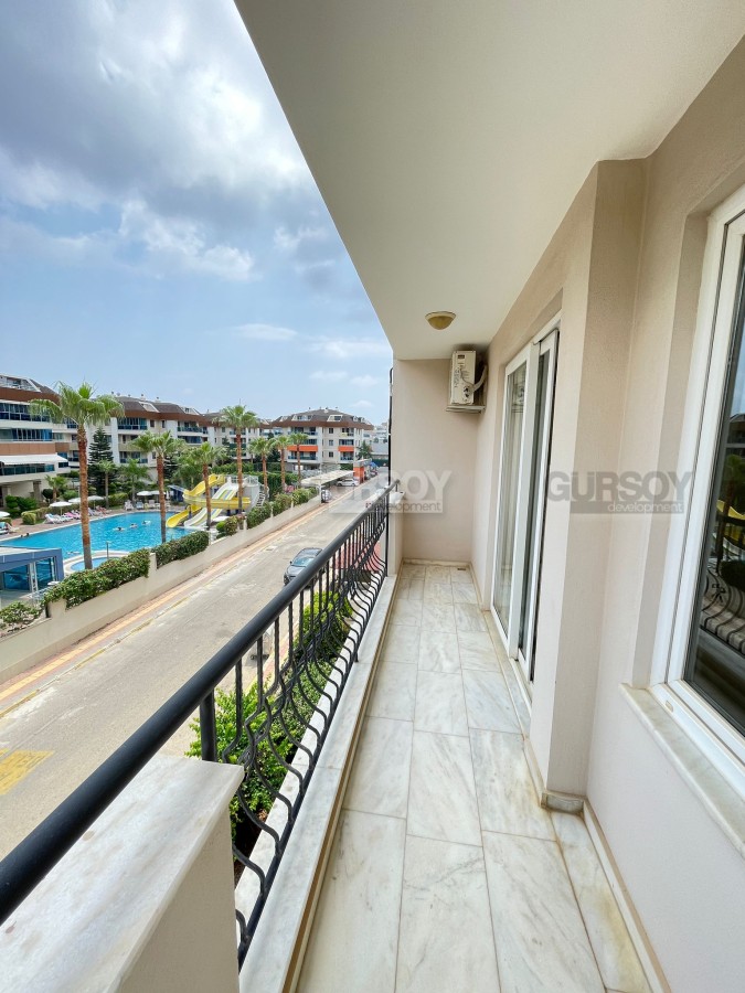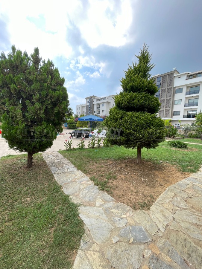 Инфраструктура комплекса включает открытый плавательный бассейн, баскетбольный корт и просторный сад, что обеспечивает возможность для отдыха на свежем воздухе и активного времяпрепровождения. Квартира находится всего в 500 метрах от моря, что гарантирует легкий доступ к пляжу и возможности для водных развлечений.