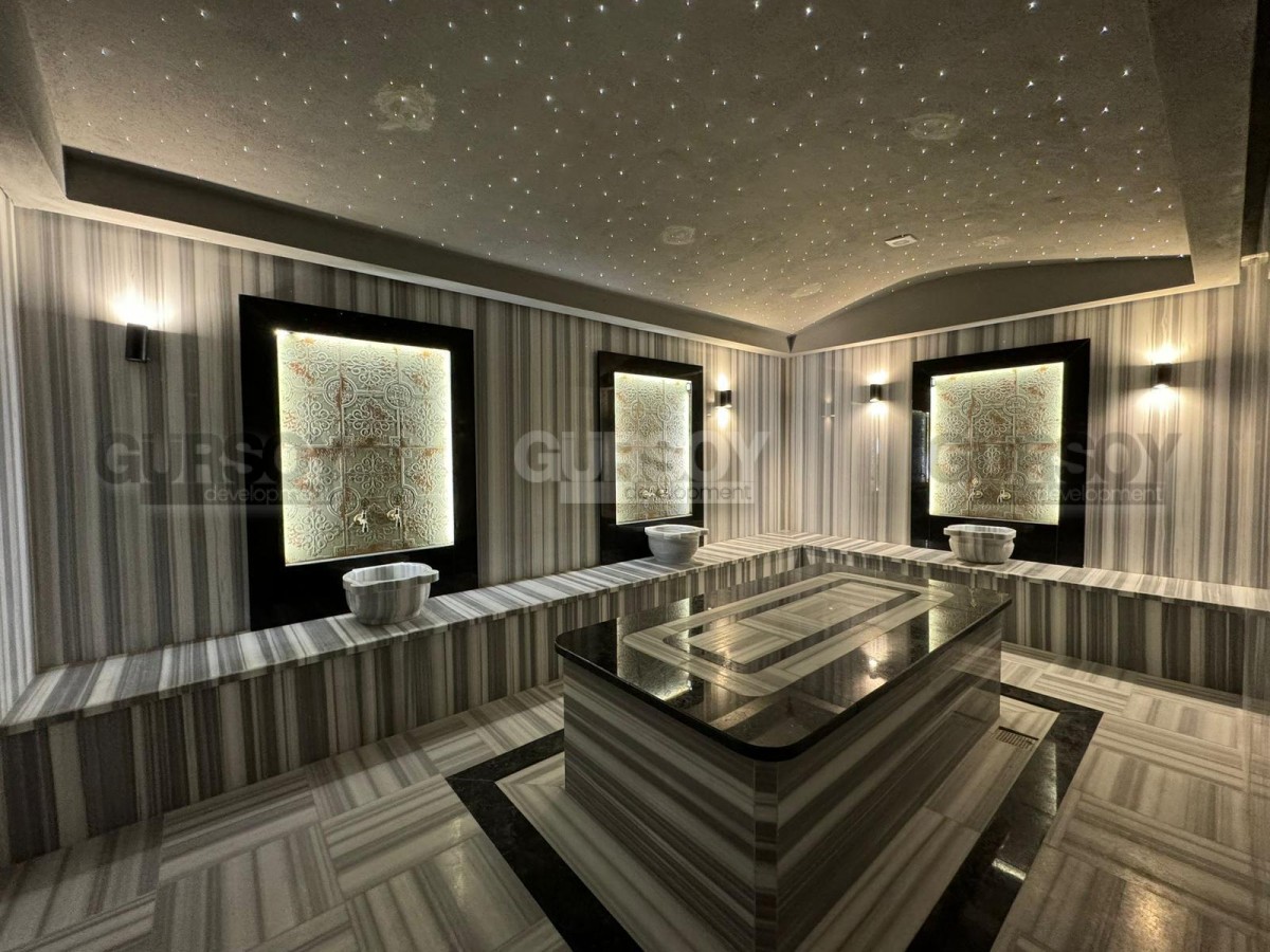 Комплекс построен в 2022 году одним из самых надёжных застройщиков Аланьи и отличается высоким качеством. На территории есть открытый бассейн с аквагорками, крытый бассейн, фитнес-зал, сауна, хамам, комната отдыха, детская игровая площадка, зона барбекю, крытая парковка, генератор, а также круглосуточный смотритель.