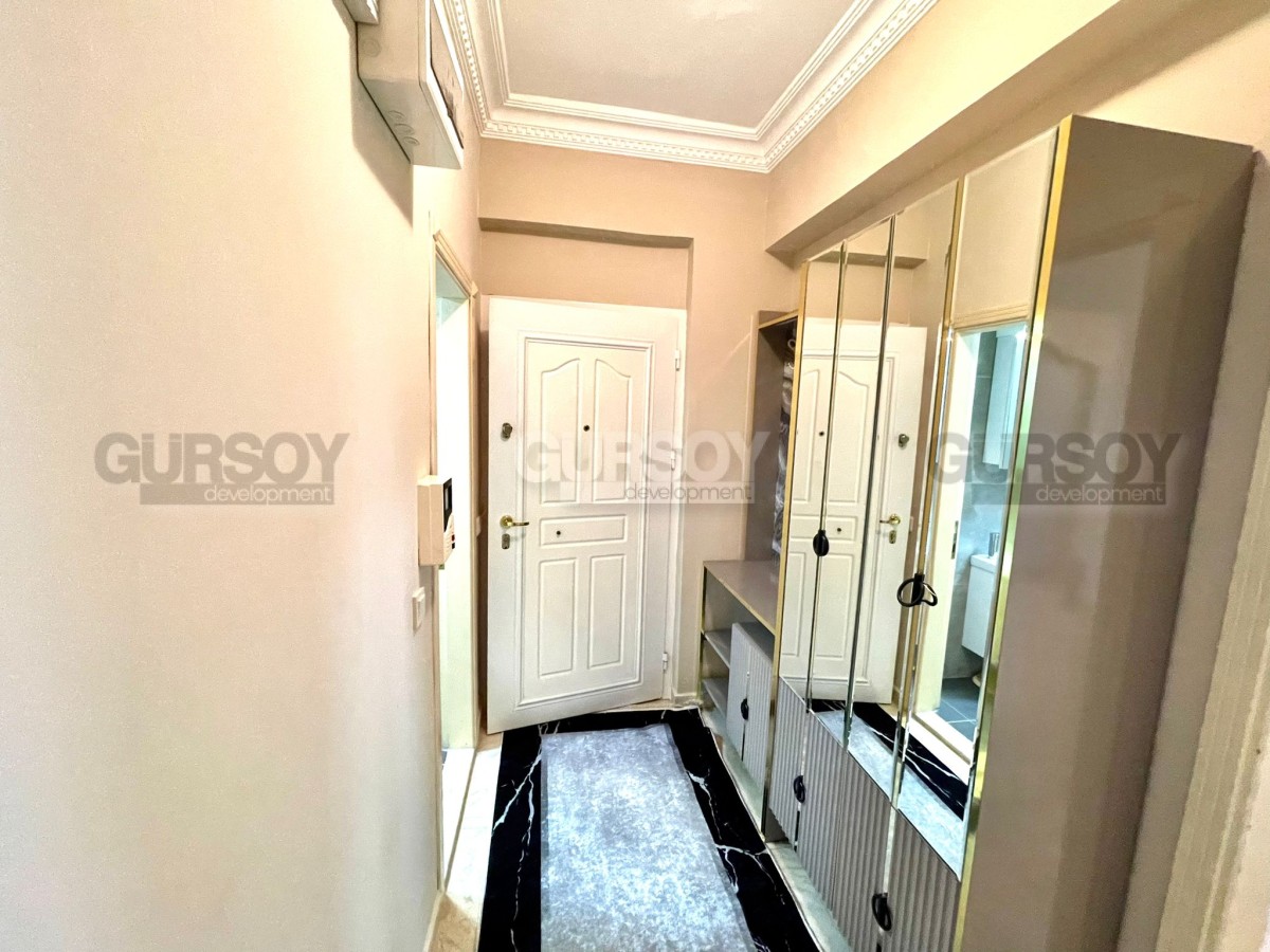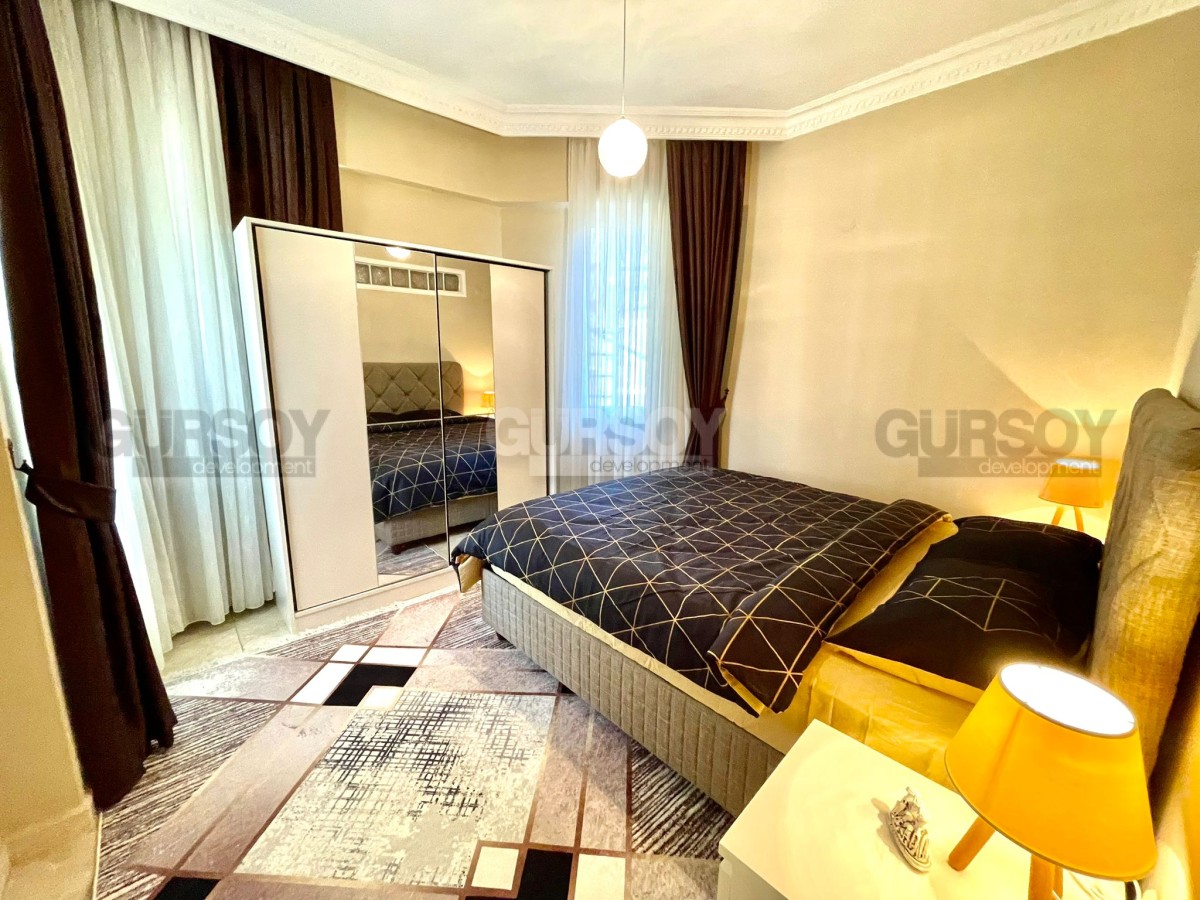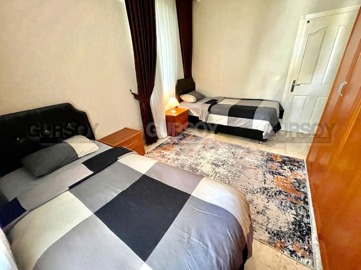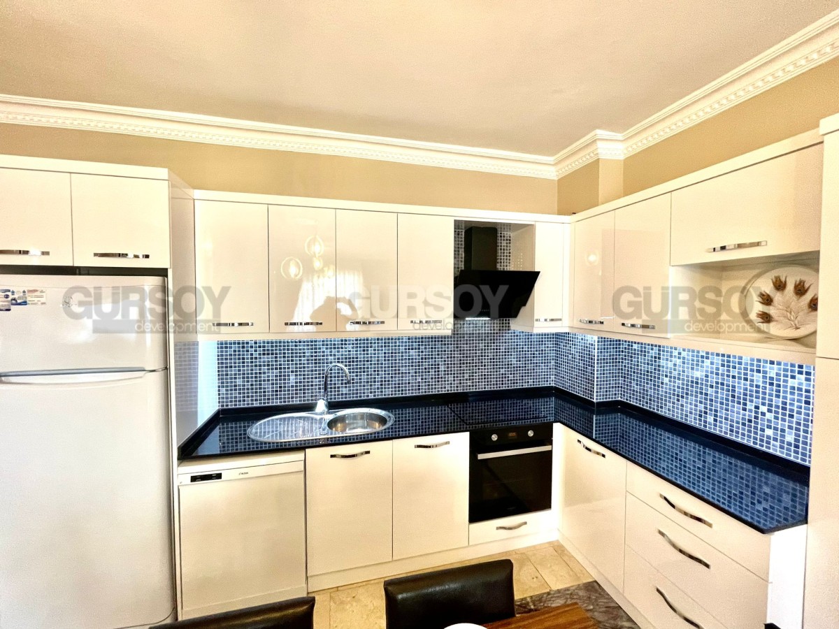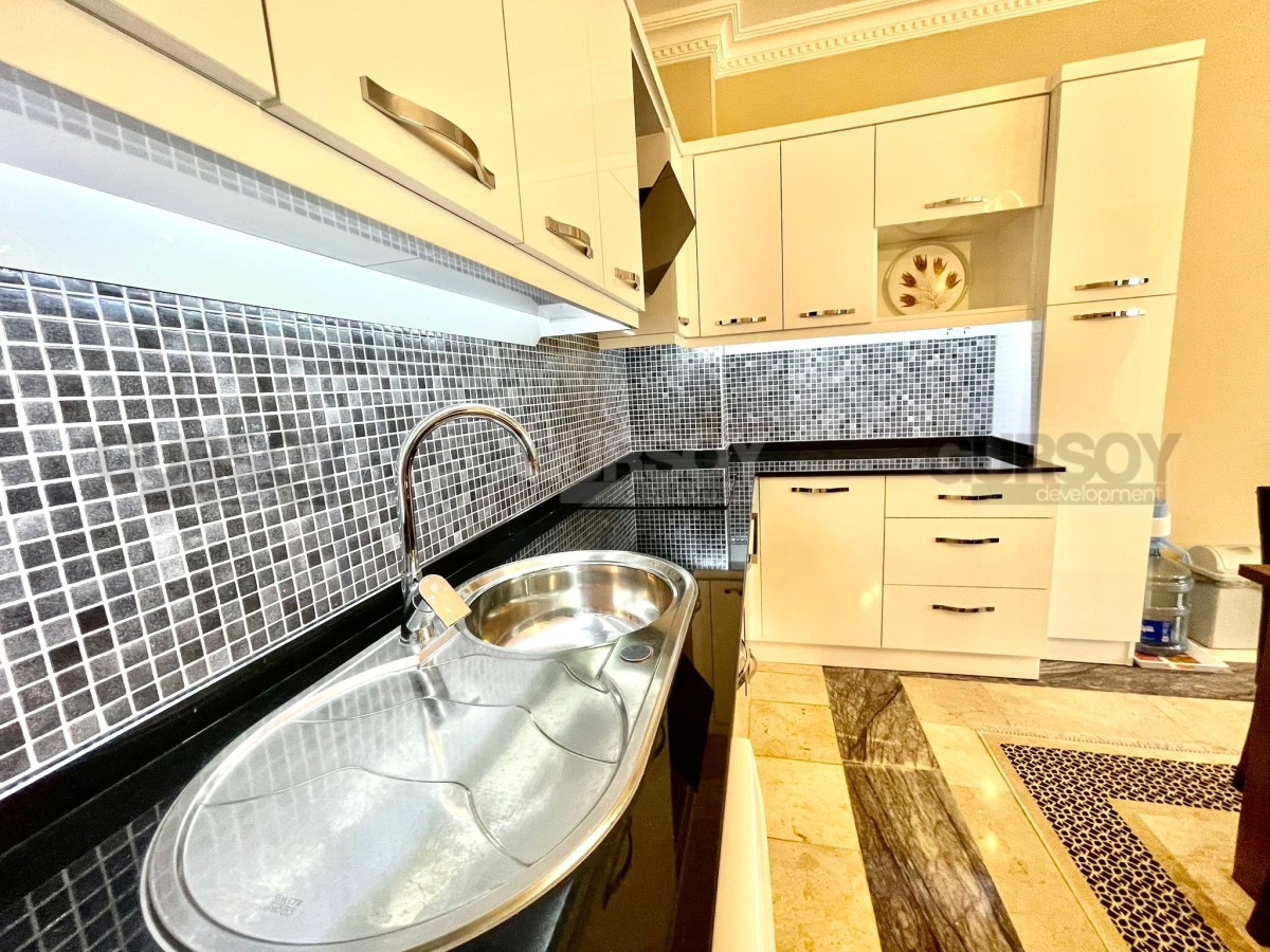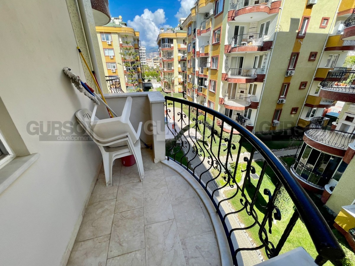 На продажу выставлена квартира 2+1 площадью 110 м2 в районе Оба. Вначале квартиры длинный коридор, где установлен удобный большой шкаф. Слева от входа расположен санузел, а далее по правую сторону открывается просторная гостиная с кухней американского типа. Из зала есть выход на балкон, где установлен стол для трапез на свежем воздухе. В конце коридора находятся две уютные спальни и ещё один санузел.