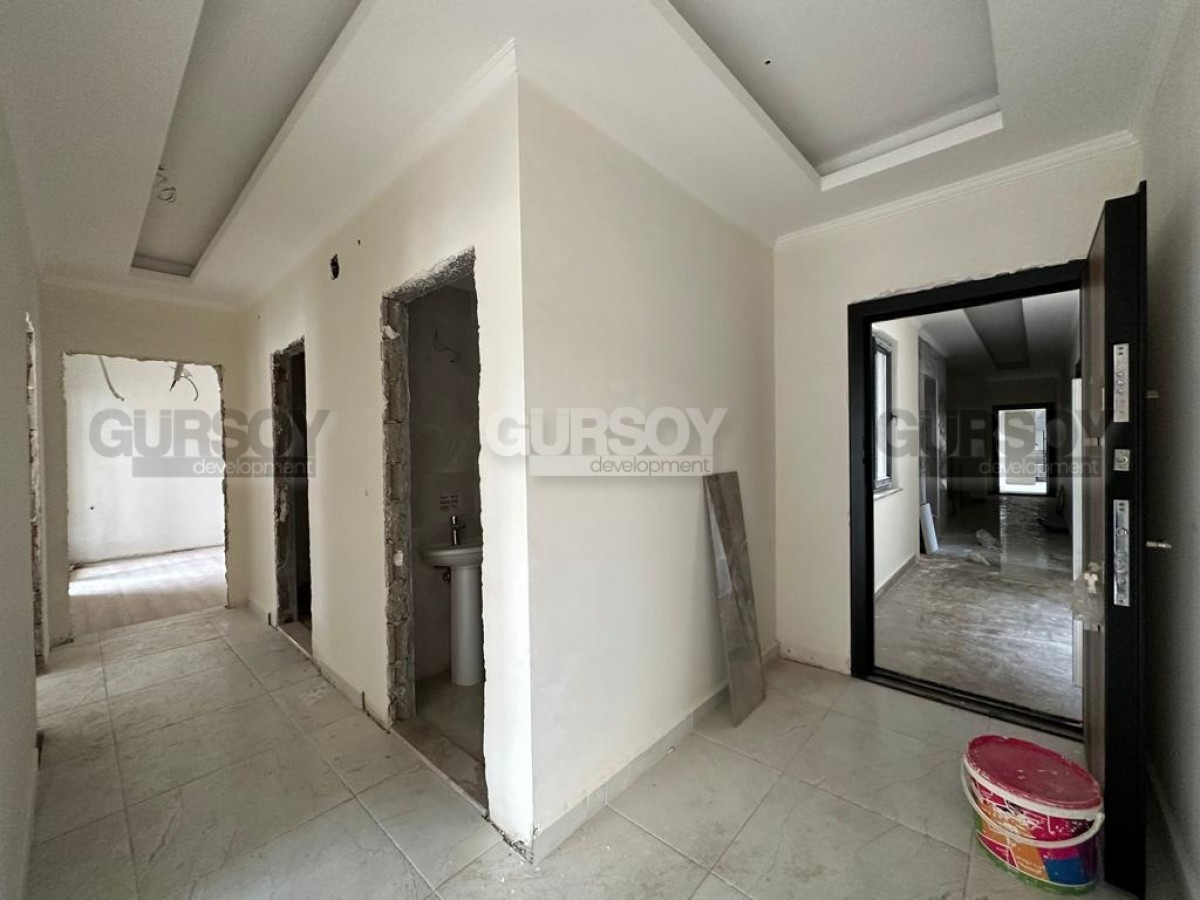 В престижном районе Аланьи - Хасбахче, на 3-м этаже в новом доме, построенном в 2023 году, выставлена на продажу просторная квартира 3+1, общей площадью 145 м2, с большой отдельной кухней, салоном, тремя спальнями, санузлами и открытыми балконами, с видом на море и гору Кале. Квартира предлагается с качественной чистовой отделкой, современным напольным покрытием, кухонным гарнитуром, с секциями для установки бытовой техники и хранения продуктов, и высококлассной сантехникой.