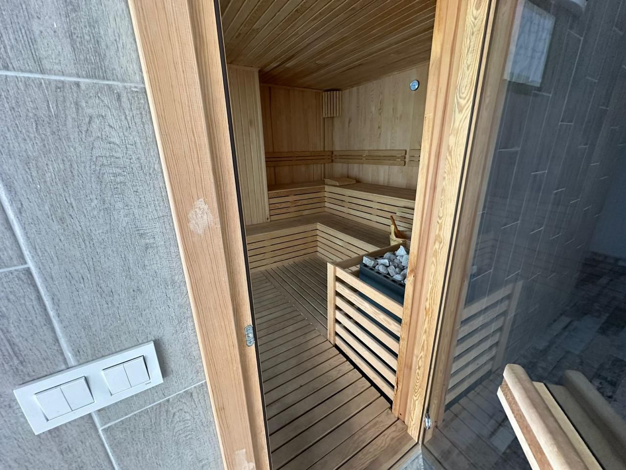 В квартире расположены 3 отдельные комнаты, 2 комнаты с двухспальными кроватями, 1 комната с двухъярусной кроватью для детей и просторная гостиная совмещенная с кухней американского типа, полньостью оборудована всей необходимой техникой. Общая площадь апартаментов составляет 130 м².