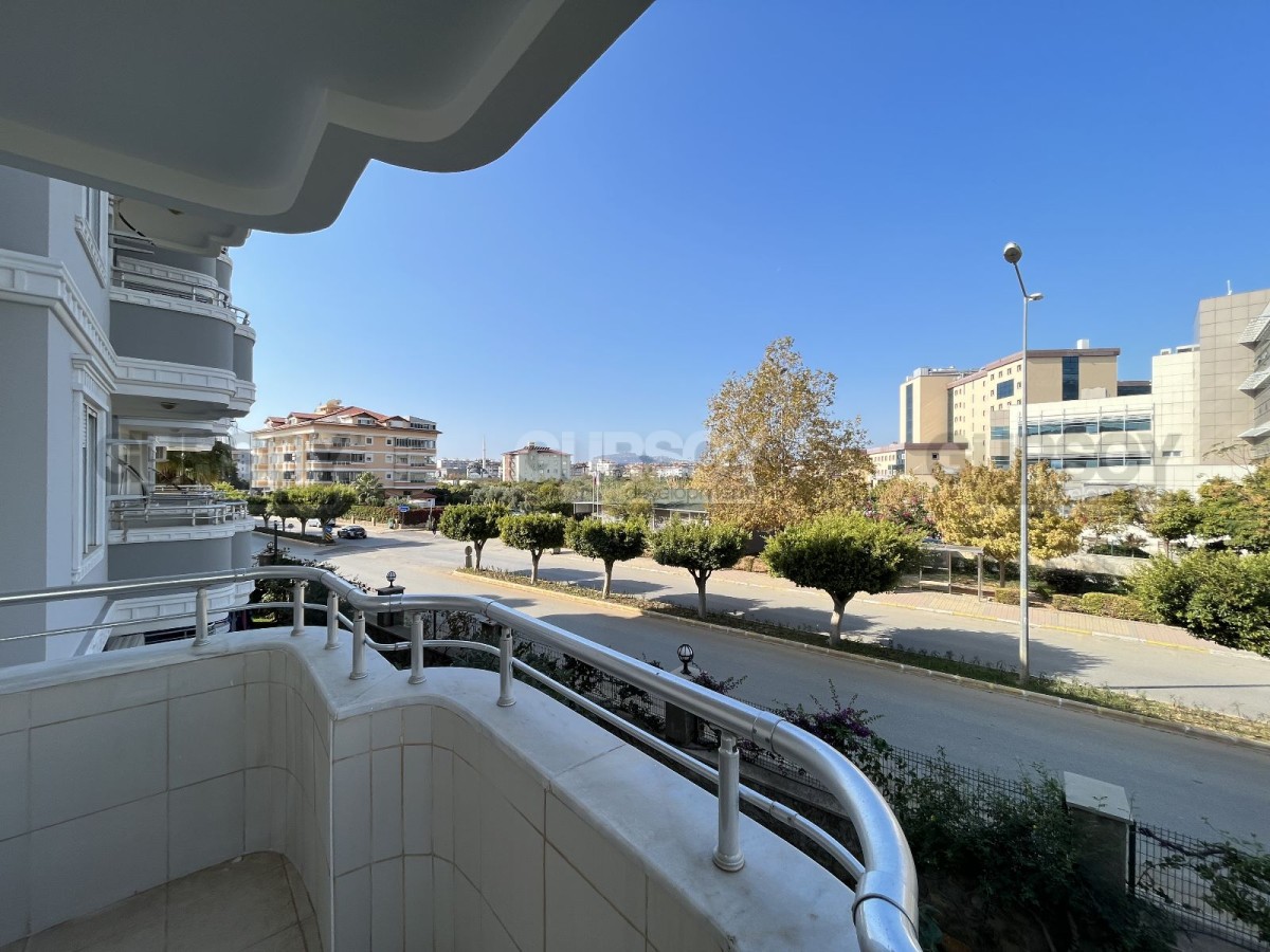 Квартира расположена в спокойном квартале района Оба, в 800 метрах от его центра и в километре от пляжа. Все необходимые объекты социальной инфраструктуры - магазины, пекарни, аптеки, кафе, отделения банков, остановки общественного транспорта, находятся в пешей доступности, что удобно для решения повседневных бытовых вопросов.