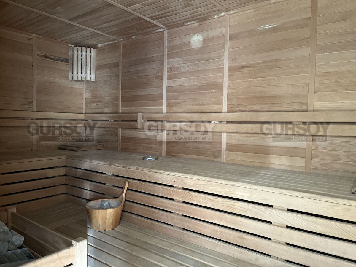 На территории комплекса, в котором находится данная квартира, оборудованы открытый бассейн с водной горкой, крытый бассейн, тренажерный зал, сауна, и парковка. В целях безопасности в резиденции установлена круглосуточная охрана, а ежемесячная плата за содержание внутренней инфраструктуры составляет всего 700 лир.