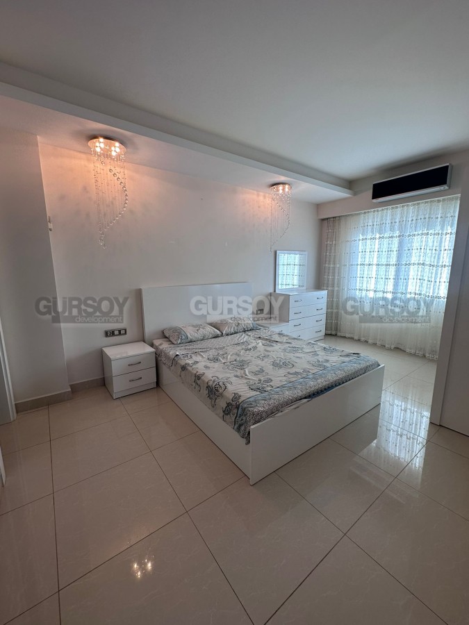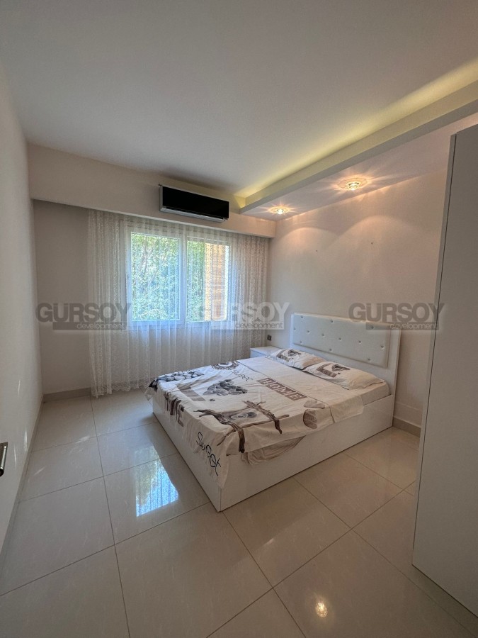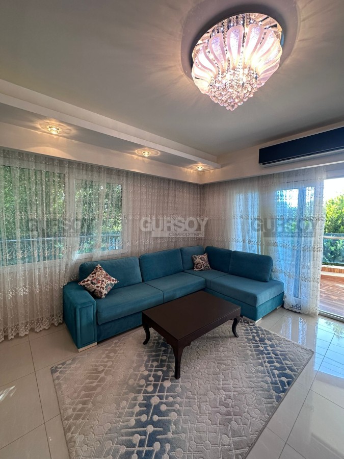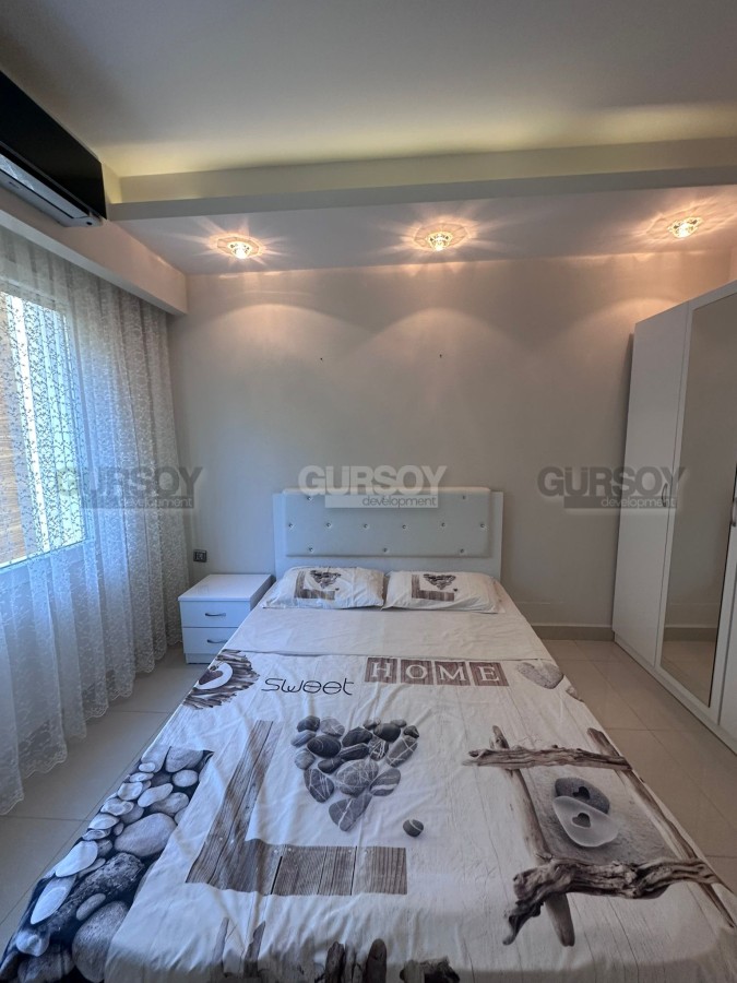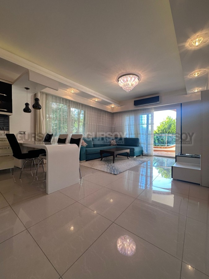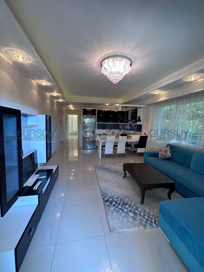 Просторная квартира 2+1 площадью 110 м² расположена на высоком первом этаже. Полностью меблирована и готова к заселению, что делает её идеальным вариантом как для постоянного проживания, так и для аренды. Планировка включает уютную гостиную, совмещённую с кухней, две светлые спальни, современные санузлы и просторный балкон, с которого открывается приятный вид на окружающий пейзаж.
