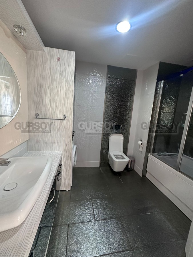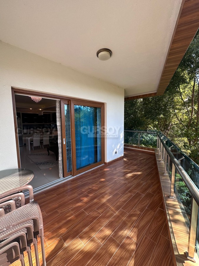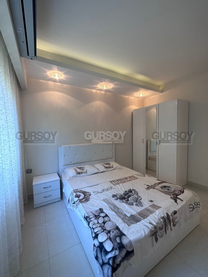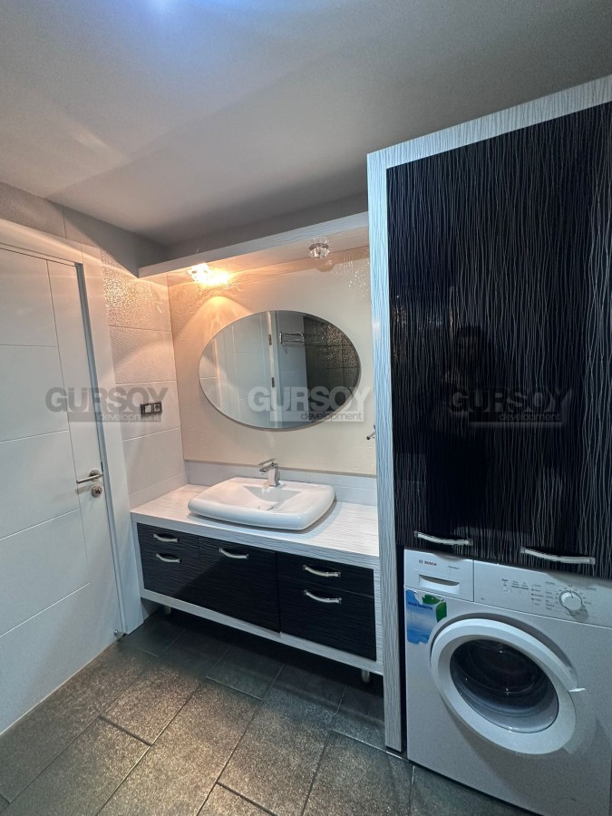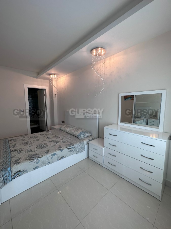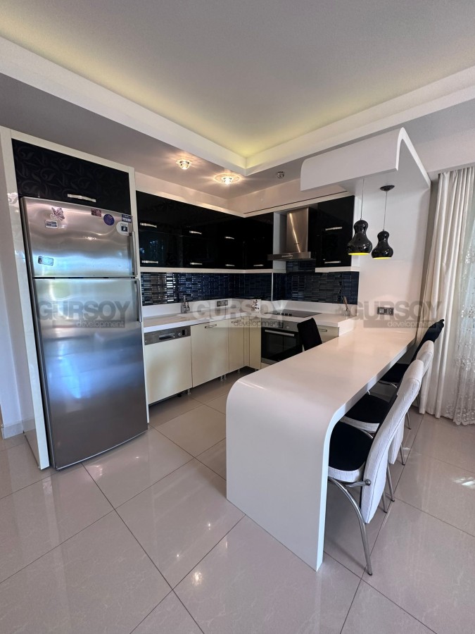 Просторная квартира 2+1 площадью 110 м² расположена на высоком первом этаже. Полностью меблирована и готова к заселению, что делает её идеальным вариантом как для постоянного проживания, так и для аренды. Планировка включает уютную гостиную, совмещённую с кухней, две светлые спальни, современные санузлы и просторный балкон, с которого открывается приятный вид на окружающий пейзаж.