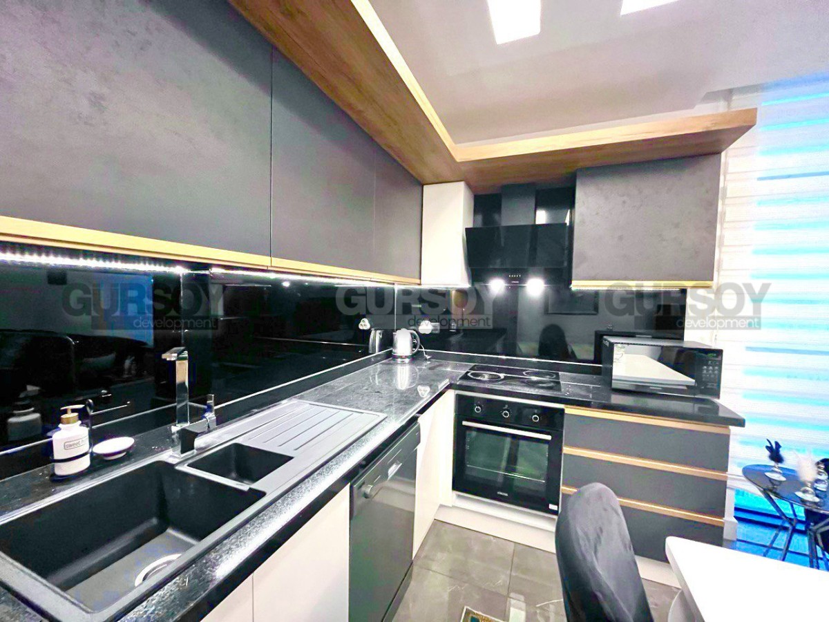 В самом центре популярного Турецкого курорта - Аланья, на 4-м этаже в комфортабельном жилом комплексе, построенном в 2021 году, выставлена на продажу симпатичная квартира, с высококлассной мебелью и всей необходимой бытовой техникой. Общая площадь квартиры - 105 м2, планировка 3+1 представлена совмещенной с кухней гостиной, тремя спальнями, санузлом и балконом, с видом на город и море. Квартира - стильная и современная, с роскошными люстрами, со вкусом подобранными картинами и предметами декора. Гостиная укомплектована мягким угловым диваном, журнальным столиком, оригинальным гарнитуром и обеденным столом на 4 персоны. Кухня оснащена холодильником, сенсорной варочной поверхностью, посудомоечной машиной и духовым шкафом. В спальнях установлены комфортабельные кровати, тумбы и гардеробные шкафы, в детской оборудован рабочий уголок с письменным столом, а на балконе имеется набор практичной садовой мебели.