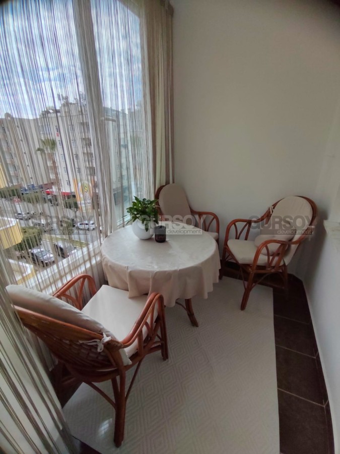 Вашему вниманию представлена готовая к проживанию квартира, с современным дизайном, мебелью и бытовой техникой, и с отличной локацией в нескольких минутах ходьбы от пляжа и центра района Махмутлар. Расположена квартира на 4-м этаже в доме 1998. Общая ее площадь - 75 м2, планировка представлена кухней открытого типа, гостиной, спальней, небольшой гардеробной, санузлом и застеклённый балконом, с видом на город. Дизайн комнат - простой и лаконичный, с теплыми светлыми оттенками в интерьере и минимумом ярких акцентов. Гостиная визуально разделена на салон, с мягкими креслами, диваном, тумбой и набором журнальных столиков; и зону кухни, с круглым обеденным столом и гарнитуром, оснащенным холодильником, посудомоечной машиной и духовым шкафом. Из гостиной есть выход на балкон, где организована уютная зона отдыха, с удобной плетёной мебелью, а просторная спальня, с гардеробной, укомплектована большой кроватью, тумбами и креслом.