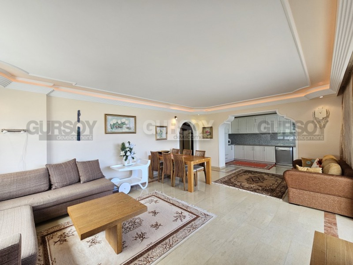 Наше портфолио пополнила комфортабельная, уютная квартира, которая прекрасно подходит для проживания большой семьи. Просторная, общей площадью 150 м2, она имеет в планировке кухню, гостиную, 3 спальни, 2 санузла, оснащённых душем и ванной, и 2 открытых балкона, с видом на море и зелёные горные склоны. Дизайн квартиры простой и лаконичный, с традиционным сочетанием светлых оттенков и дерева в интерьере. Гостиная отделена от кухни широкой аркой, и укомплектована мягкими диванами, журнальным столиком, тумбой, шкафом и классическим обеденным столом. Просторная кухня - мечта любой хозяйки, - оснащена современной бытовой техникой. В двух спальнях установлены комфортабельные кровати и добротные деревянные гарнитуры, а в одной из комнат организован рабочий кабинет, диваном, стендом с открытыми полками и письменным столом. При входе в квартиру имеется дополнительный гардеробный шкаф, а на балконе - практичная садовая мебель.