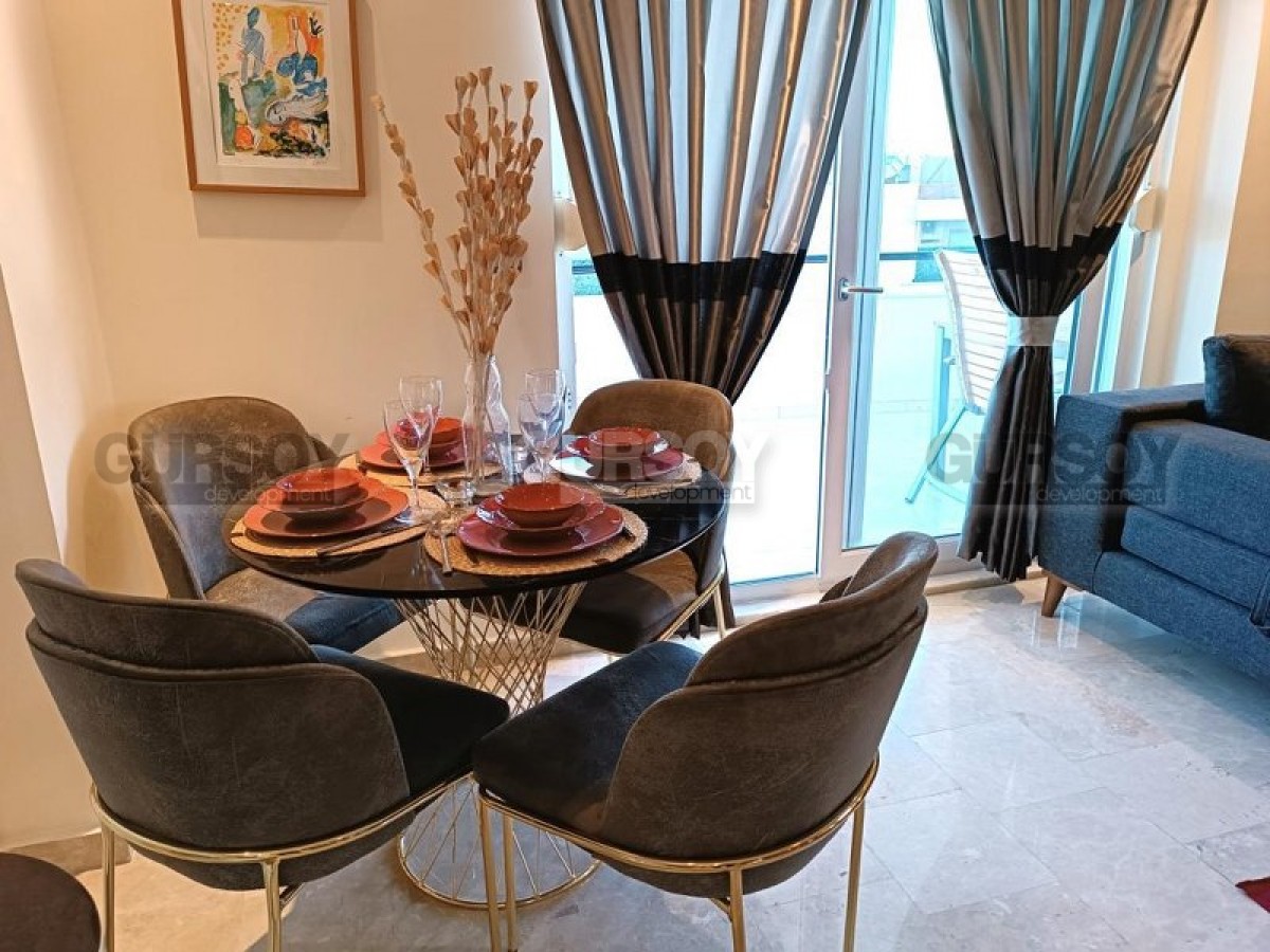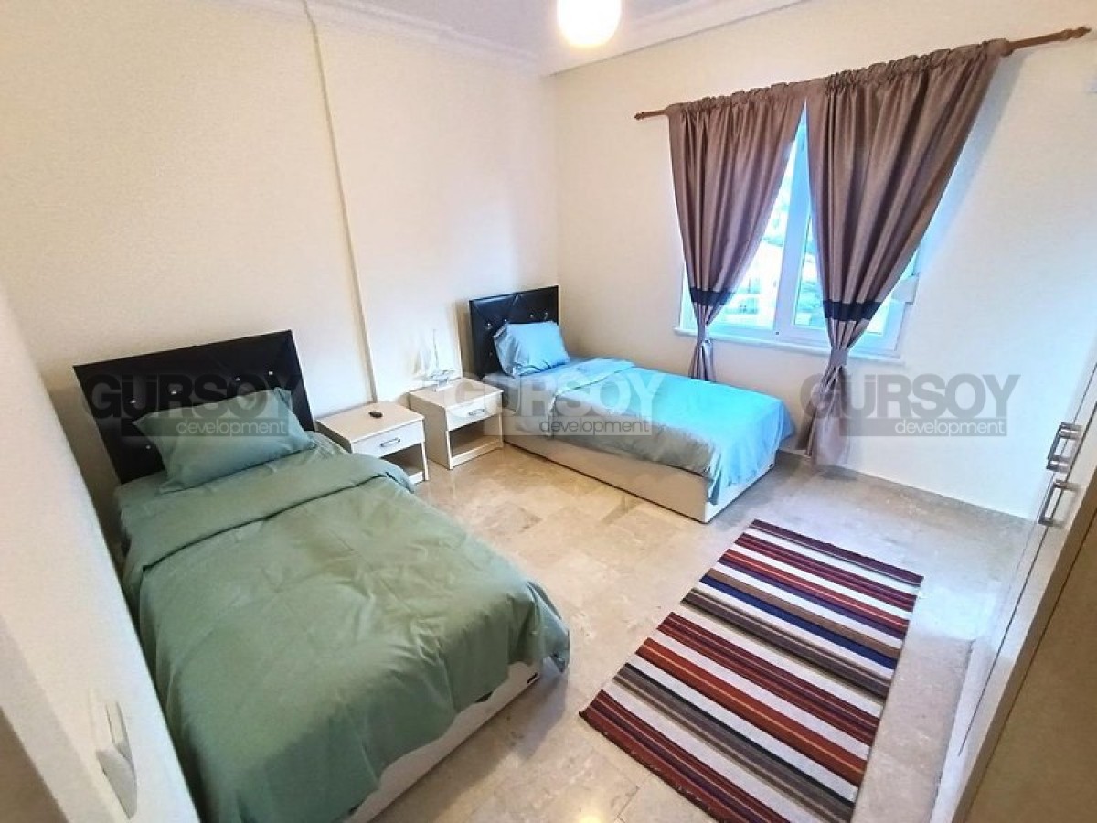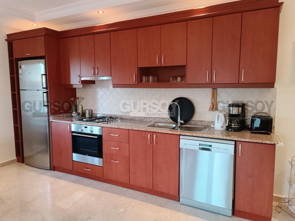 В портфолио нашей компании появилась комфортабельная, уютная квартира 2+1, расположенная на 2-м этаже в доме 2014 года постройки, в благоустроенном, современном районе Аланьи - Джикджилли. В планировке квартиры, общей площадью 110 м2 - кухня открытого типа, салон, 2 спальни, 2 санузла и 2 балкона, с видом на Торосские горы. Дизайн комнат - сдержанный и лаконичный, с теплыми светлыми оттенками в интерьере. Большая гостиная укомплектована массивным угловым диваном, журнальным столиком, стильной тумбой о обеденным столом, с удобными стульями. Классическая кухня оснащена холодильником, посудомоечной машиной и духовым шкафом. В спальнях установлены мягкие кровати, тумбы и гардеробные шкафы, а на балконе имеется набор практичной садовой мебели.