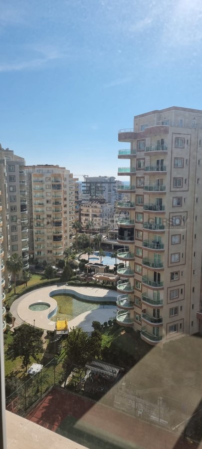 Площадь квартиры - 115 м2. Она расположена на 8-м этаже 9-этажного комплекса 2009 года постройки. Планировка 2+1 подразумевает наличие гостиной, совмещённой с кухней, 2 спален, 2 ванных комнат и 2 балконов. Квартира продаётся с качественным ремонтом, здесь уже установлен кухонный гарнитур, окна ПВх с двойным остеклением, входные и межкомнатные двери и напольное покрытие. Ванные комнаты оборудованы душевыми кабинами и сантехникой. С балконов открываются виды на море и горы. Расстояние до моря составляет всего 550 метров.