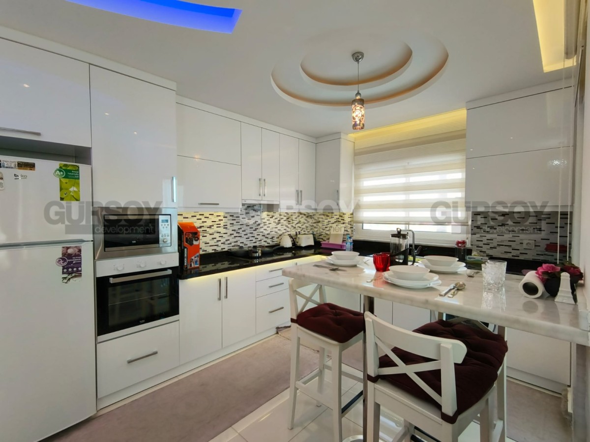 Продаётся просторная меблированная квартира 1+1 площадью 86 м², расположенная на 2-м этаже современного 12-этажного дома, построенного в 2016 году. В квартире имеется одна спальня, ванная комната с туалетом, уютная гостиная с кухонной зоной, а также балкон с частичным видом на море. Жильё полностью оборудовано всей необходимой мебелью и техникой, установлена система кондиционирования, что делает квартиру готовой к немедленному заселению без дополнительных вложений.