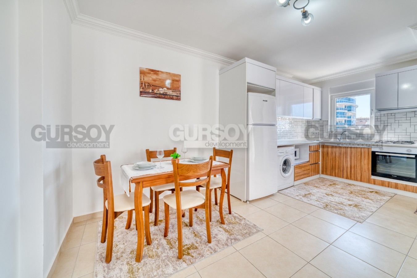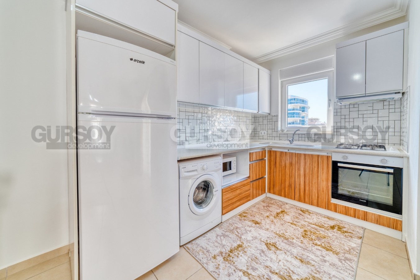 Вашему вниманию представлена просторная меблированная квартира в Махмутларе планировкой 1+1. Площадь квартиры - 65 м2. Квартира расположена на 7-м этаже 12-этажного жилого комплекса, который был сдан в эксплуатацию в 2014 году. Планировка 1+1 подразумевает наличие гостиной, совмещённой с кухней, спальни, ванной комнаты и балкона. Продаётся квартира в полной меблировке, с установленной бытовой техникой и кондиционерами. Ванная комната оборудована душевой кабиной и сантехникой, установлен водонагреватель. Квартира выходит на южную сторону. С балкона открывается вид на сочную зелень, пёстрые пальмы и частичный вид на море.