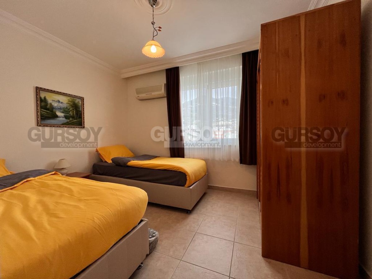На продажу представлена меблированная квартира 2+1 в центре Алании. Планировка 2+1 (две спальни и гостиная с кухней), площадь составляет 115 м2. Квартира расположена на 6-м этаже. Ориентация: юг, запад, север, что позволяет наслаждаться прекрасными видами на море, Крепость, горы и город. Представленная квартира на продажу, полностью укомплектована мебелью и бытовой техникой и полностью готова к проживанию.