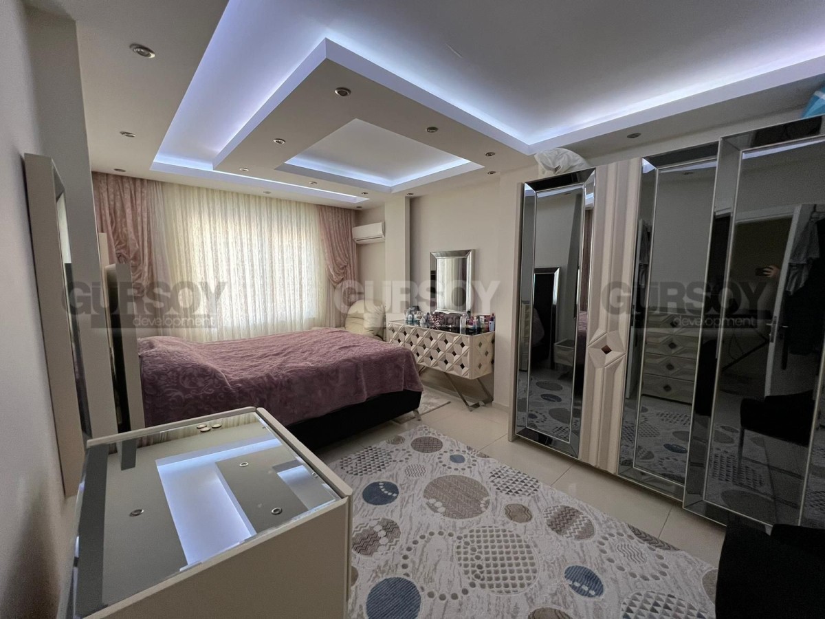 Компания Gürsoy Development представляет вашему вниманию квартиру планировкой 2+1, площадью 115 кв.м. Данная планировка подразумевает наличие гостиной, совмещённой с кухней, 2 спален, 2 ванных комнат и 2 балконов. Квартира продаётся с полным комплектом мебели и бытовой техники. В квартире подвесные потолки с LED-подсветкой и точечным освещением. Квартира выходит на юго-восточную сторону, поэтому она очень светлая. Ванные комнаты оборудованы душевыми кабинами и современной сантехникой. Квартира расположена на 5-м этаже 10-этажного жилого комплекса 2016 года постройки. Квартира полностью готова к проживанию. Данный вариант отлично подойдёт как для постоянного проживания, так и для пассивного дохода от сдачи в аренду.