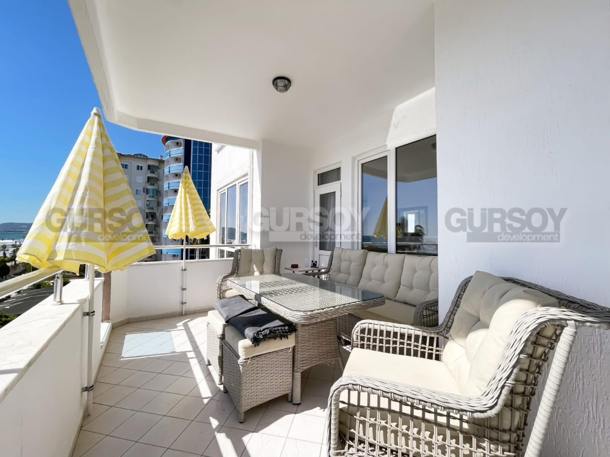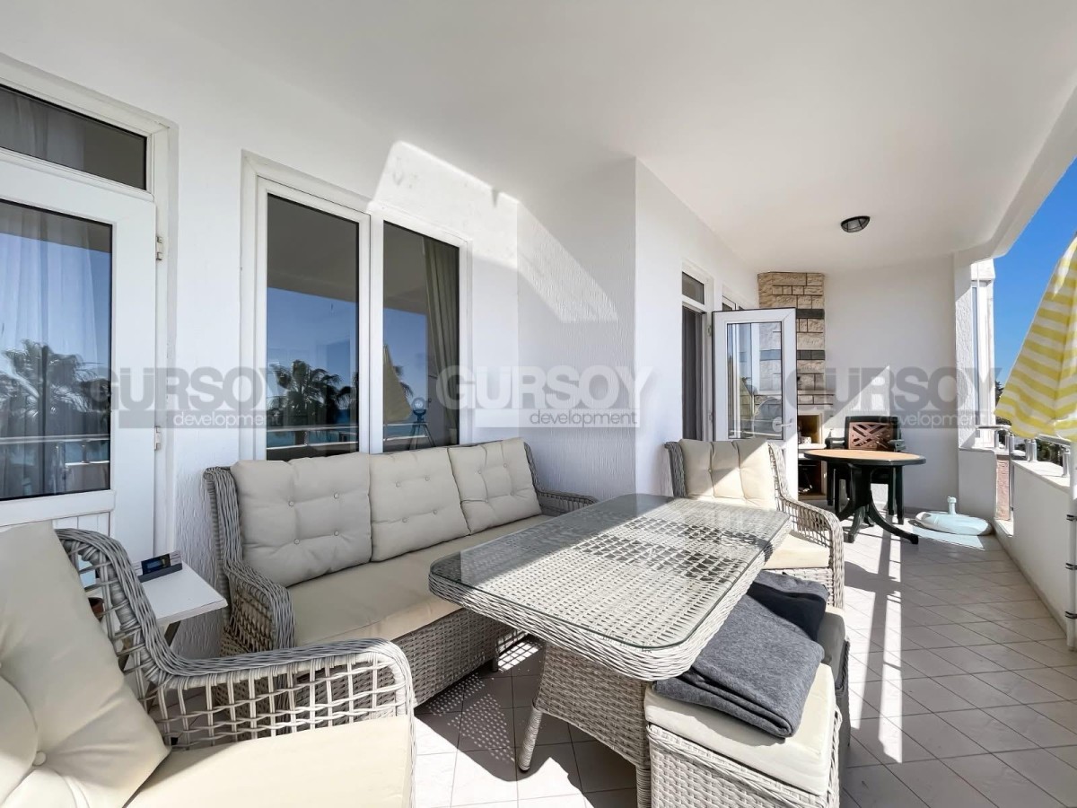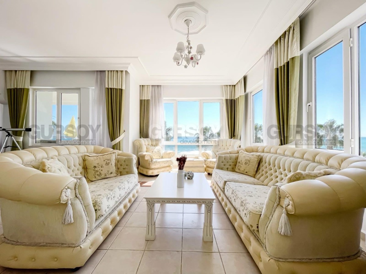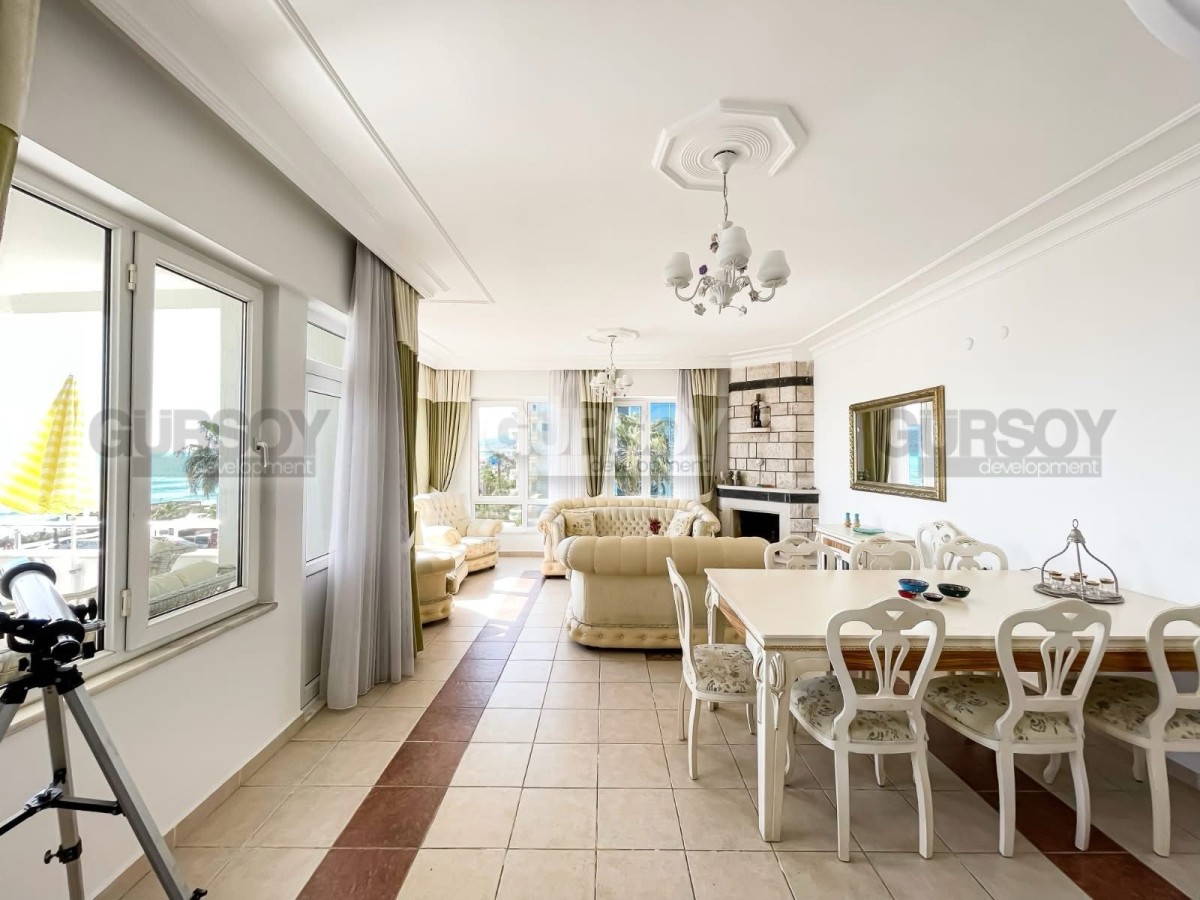 Общая площадь квартиры составляет 150 м². Апартаменты полностью меблированы и готовы к проживанию. Квартира находится на 4 этаже 5-этажного дома, отличается продуманной планировкой и южной ориентацией, благодаря чему помещения наполнены естественным светом. Из окон открывается великолепный панорамный вид на Средиземное море и историческую крепость Кале.