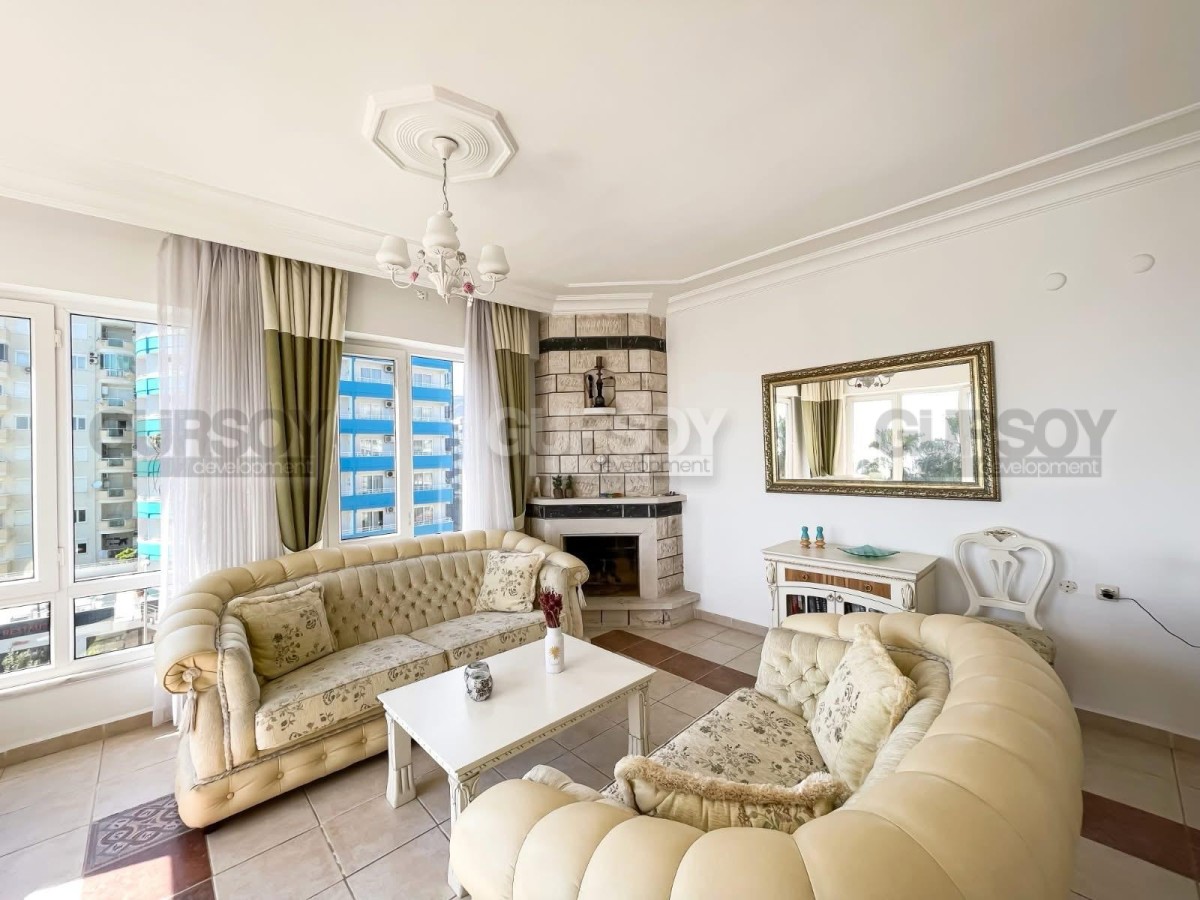 Продаётся просторная квартира 3+1 с видом на море и гору Кале, расположенная в районе Тосмур, Аланья.