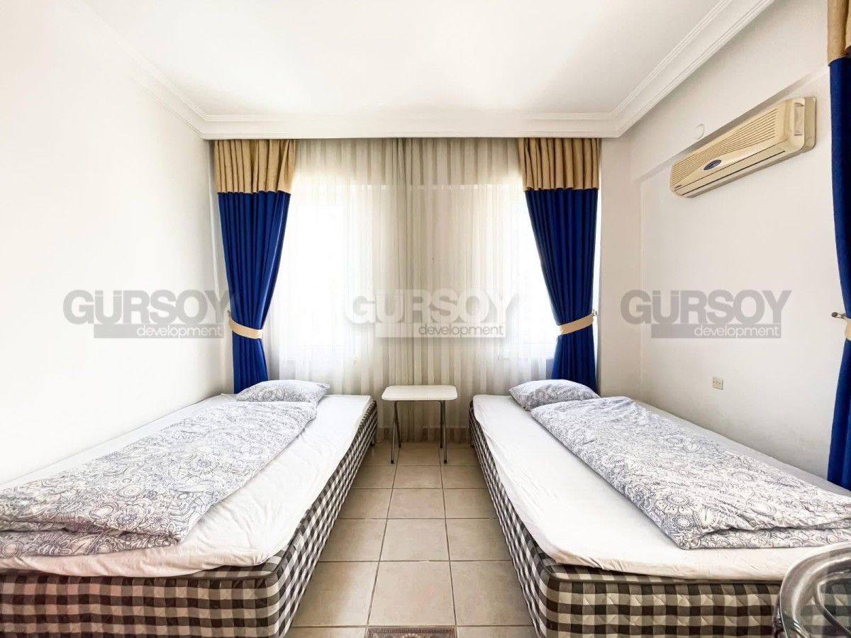 Здесь гармонично сочетаются спокойная атмосфера и удобная городская инфраструктура. В шаговой доступности находятся магазины, кафе, аптеки, школы, автобусные остановки и набережная для прогулок. До центра Аланьи можно добраться всего за 10 минут.