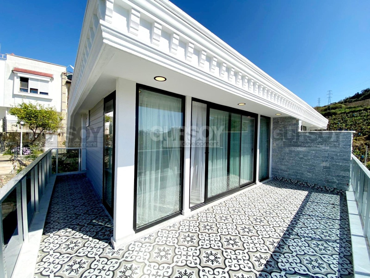 Агентства недвижимости Gursoy Development представляет просторную виллу 3+1, 210м2 с земельным участком 202 м2 в престижном районе Каргыджак, который находится в 14 км от центра курортного города. Каргыджак славится своими панорамными видами на море, город и прекрасными пляжами.