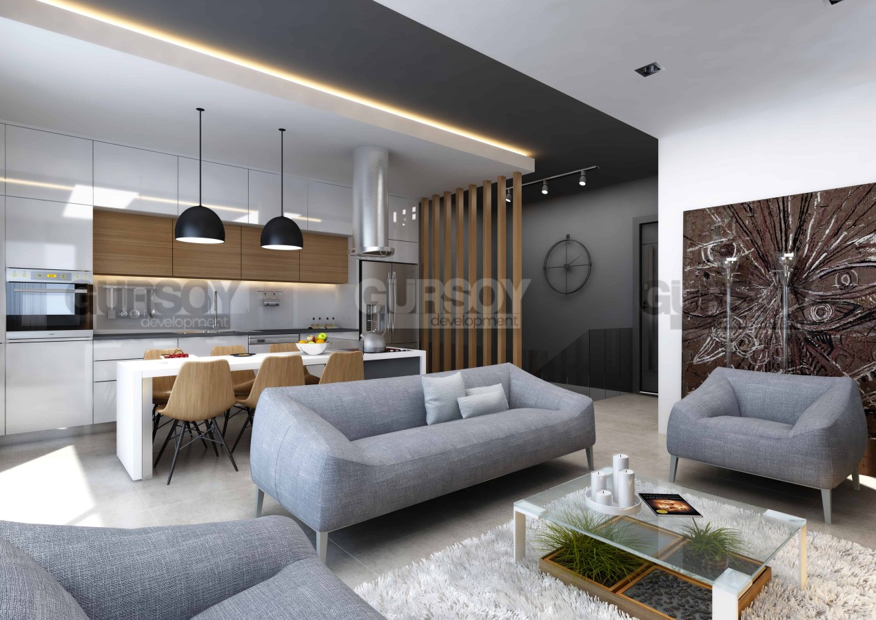 Жилой комплекс предлагает просторные двухуровневые квартиры планировок 3+1 (215 м2) и 4+1 (215-280 м2). Все квартиры будут отделаны высококачественными материалами, чтобы обеспечить Вам комфорт и уют. Квартиры будут сданы в полной чистовой отделке: кухонный гарнитур с нишами под бытовую технику, окна ПВХ с двойным остеклением, оборудованная ванная комната (сантехника и душевая кабина), входные и межкомнатные двери и напольное покрытие.