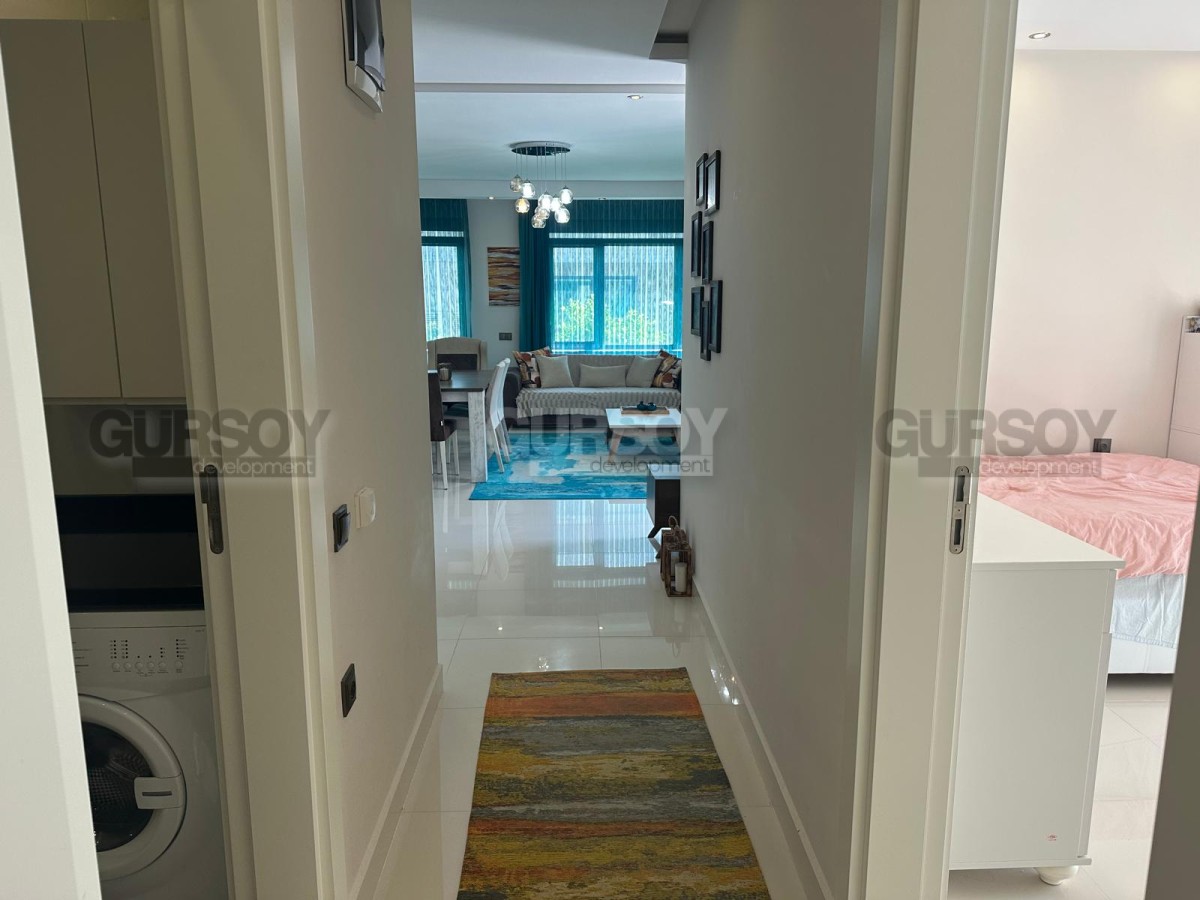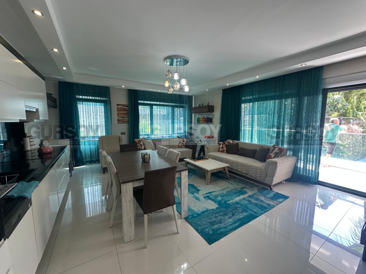 Предлагается в продажу просторные и светлые апартаменты с планировкой 2+1 общей площадью 95 м². Апартаменты расположены на первом этаже жилого комплекса с огороженной и охраняемой территорией. Квартира продаётся полностью меблированной — можно сразу заселиться или сдать в аренду без дополнительного ремонта.