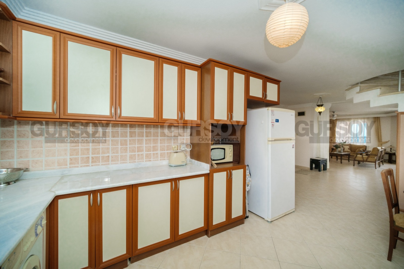Предлагается к продаже просторный дублекс, расположенный в приватном комплексе на склоне гор в районе Бекташ. Общая площадь таких апартаментов составляет 220 кв.м. Планировка состоит из трех спален, гостиной с кухней открытого плана, двух ванных и трех балконов с потрясающими видами на горы и Средиземное море. В стоимость объекта входит мебель и бытовая техника. Расположена квартира на 2 и 3 этаже трехэтажного блока, к которому закреплен отдельный бассейн помимо общего, которым также может пользоваться все жильцы. Территория проекта имеет большую зеленую зону с несколькими бассейнами, зонами отдыха и красивыми ландшафтными дизайнами.