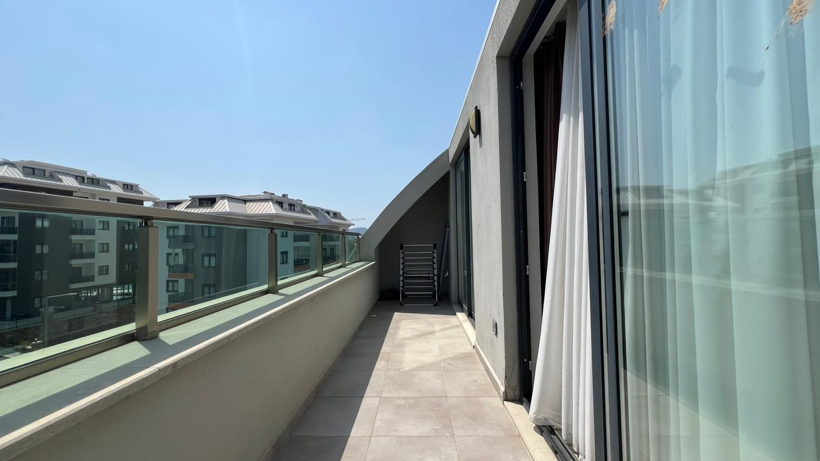 Квартира расположена на 5-м этаже пятиэтажного дома, построенного в 2021 году. Общая площадь составляет 100 м², что обеспечивает достаточно пространства для комфортной жизни. Планировка включает светлую гостиную с кухней открытого типа, две спальни, ванную комнату, два санузла и балкон. Формат дуплекса делает квартиру более просторной и удобной для семьи.