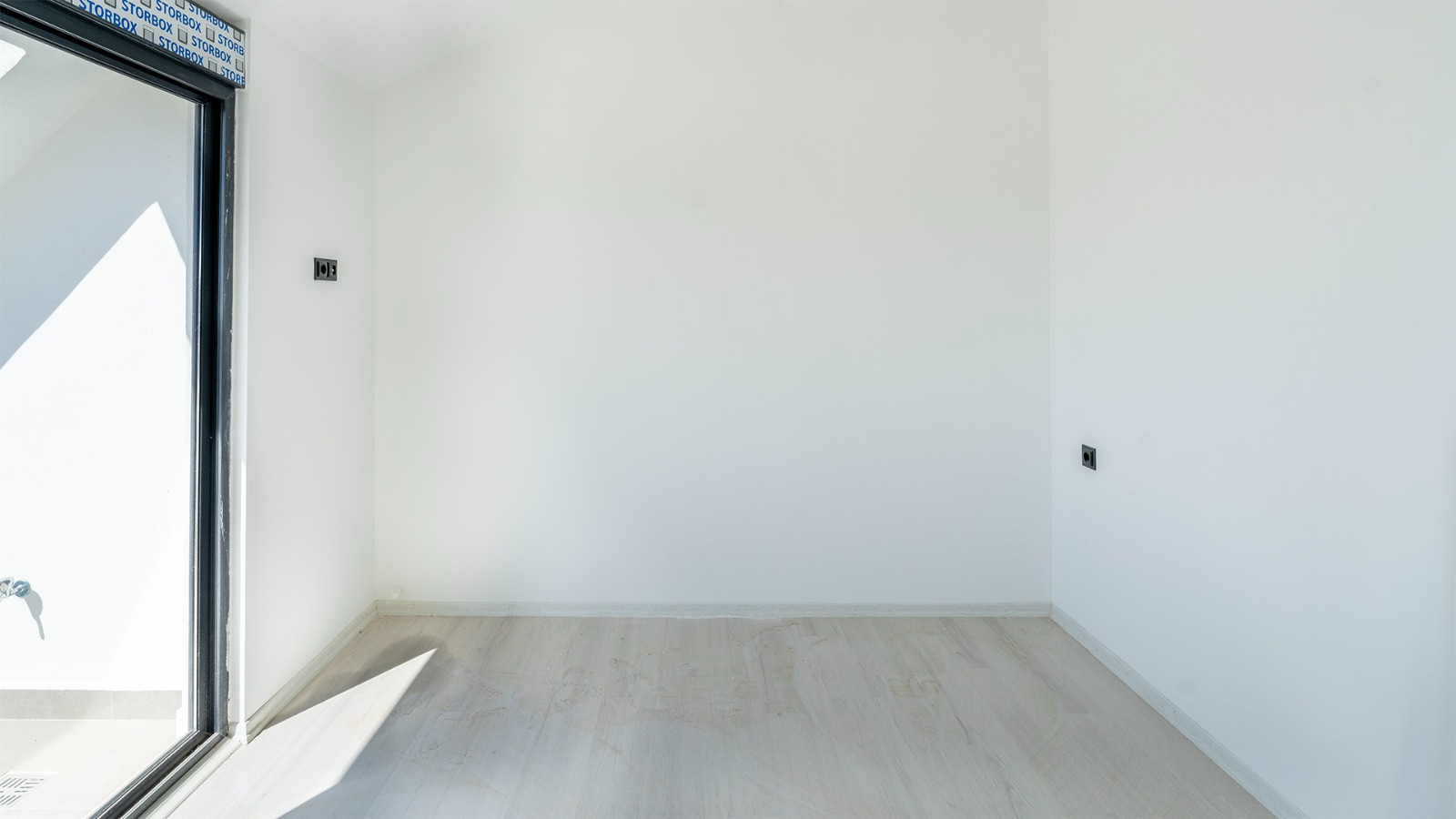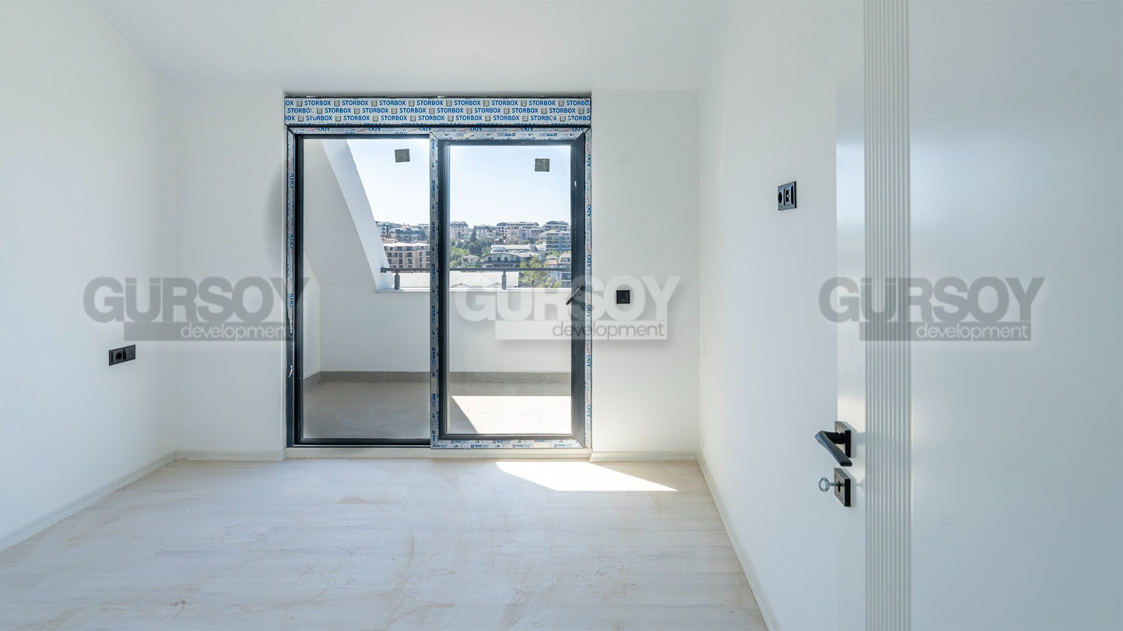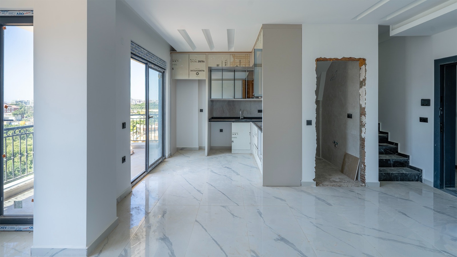 Квартира общей площадью 145 м² расположена на 4–5 этажах 5-этажного дома. Формат 3+1 duplex включает просторную гостиную с кухонной зоной, три спальни, два полноценных санузла и дополнительный гостевой WC, а также два балкона. Квартира продаётся без мебели, что даёт возможность обустроить интерьер полностью под свой вкус.