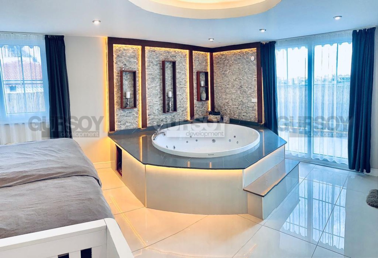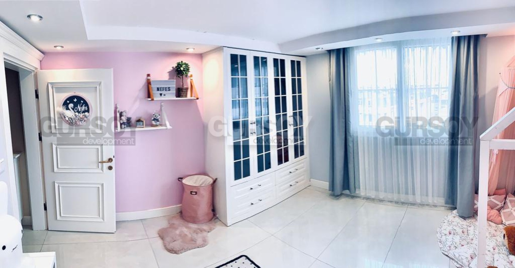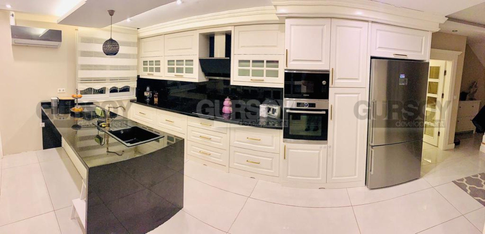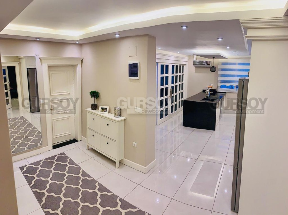 Компания Gürsoy Development представляет вашему вниманию двухуровневую квартиру 4+1 площадью 210 кв.м. в жилом комплексе всего в 350 метрах от моря районе Конаклы. Квартира продаётся с полной чистовой отделкой, с качественным ремонтом и элитным декором, кухонным гарнитуром и оборудованными санузлами. В одной из спален установлено джакузи. Квартира продаётся без мебели, поэтому у Вас есть возможность проявить дизайнерские навыки и обставить квартиру исходя из собственных предпочтений. Планировка 4+1 подразумевает наличие 4-х спален, гостиной, совмещённой с кухней, 2-х ванных комнат и гардеробной. Дуплекс расположен на 3-м и 4-м этажах 4-этажного комплекса городского типа. Данный тип комплекс подразумевает отсутствие инфраструктуры, что полностью компенсируется локацией комплекса. На территории комплекса есть охрана и парковка.