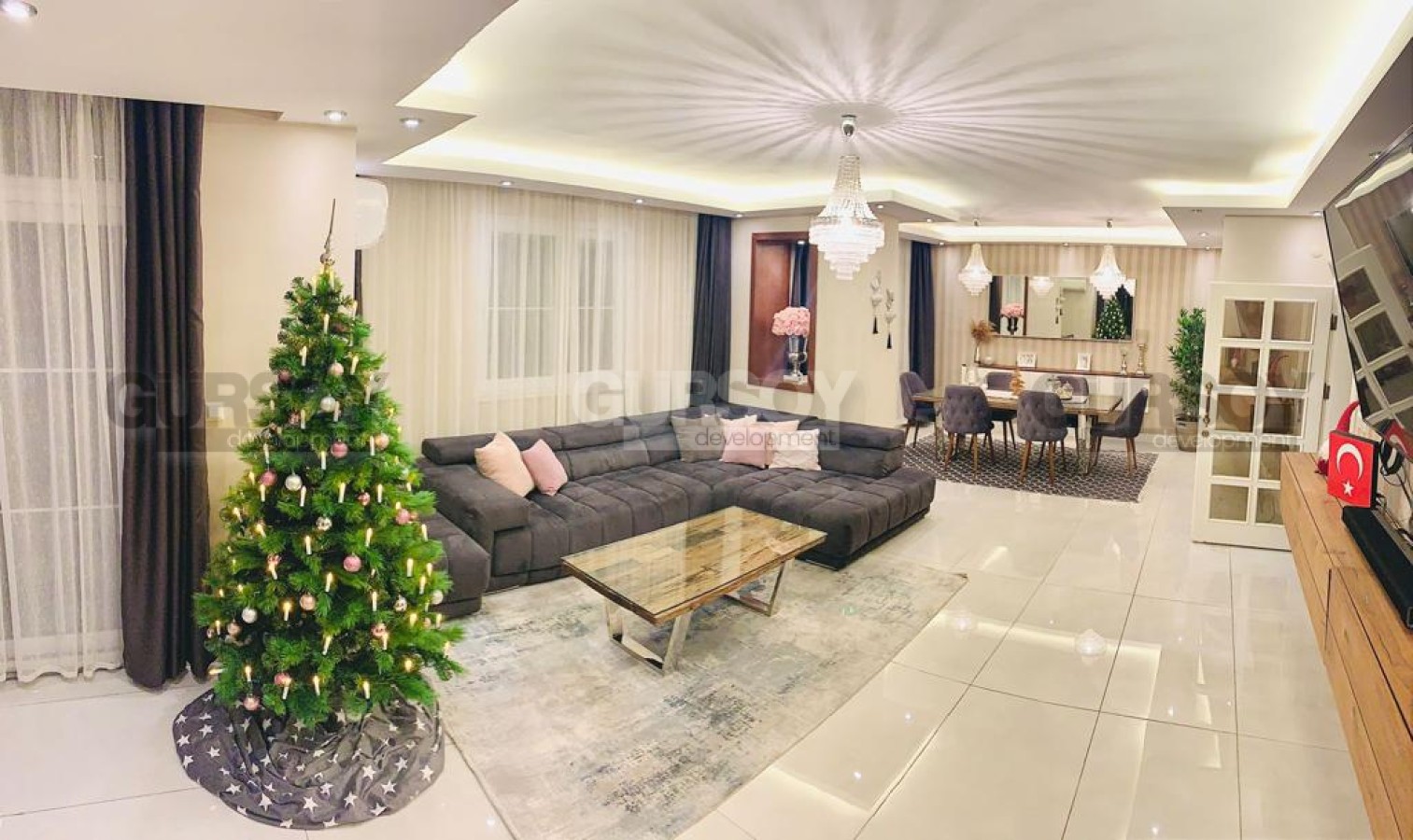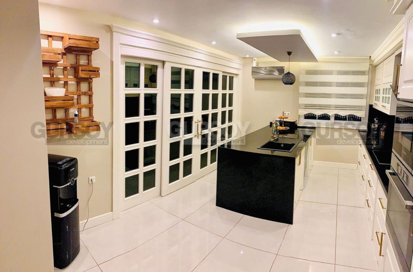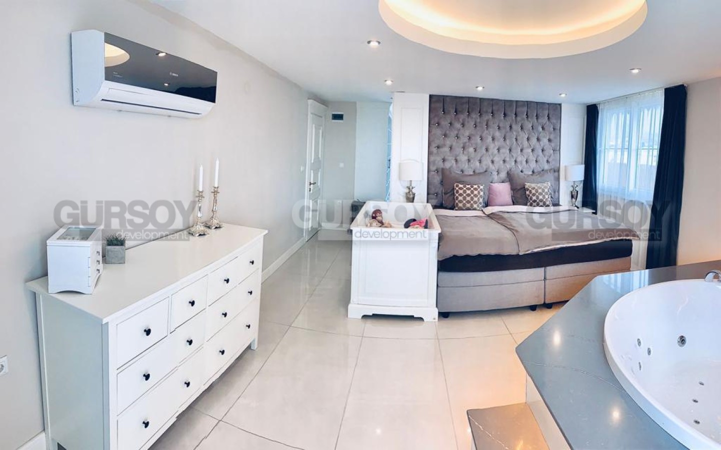 Компания Gürsoy Development представляет вашему вниманию двухуровневую квартиру 4+1 площадью 210 кв.м. в жилом комплексе всего в 350 метрах от моря районе Конаклы. Квартира продаётся с полной чистовой отделкой, с качественным ремонтом и элитным декором, кухонным гарнитуром и оборудованными санузлами. В одной из спален установлено джакузи. Квартира продаётся без мебели, поэтому у Вас есть возможность проявить дизайнерские навыки и обставить квартиру исходя из собственных предпочтений. Планировка 4+1 подразумевает наличие 4-х спален, гостиной, совмещённой с кухней, 2-х ванных комнат и гардеробной. Дуплекс расположен на 3-м и 4-м этажах 4-этажного комплекса городского типа. Данный тип комплекс подразумевает отсутствие инфраструктуры, что полностью компенсируется локацией комплекса. На территории комплекса есть охрана и парковка.