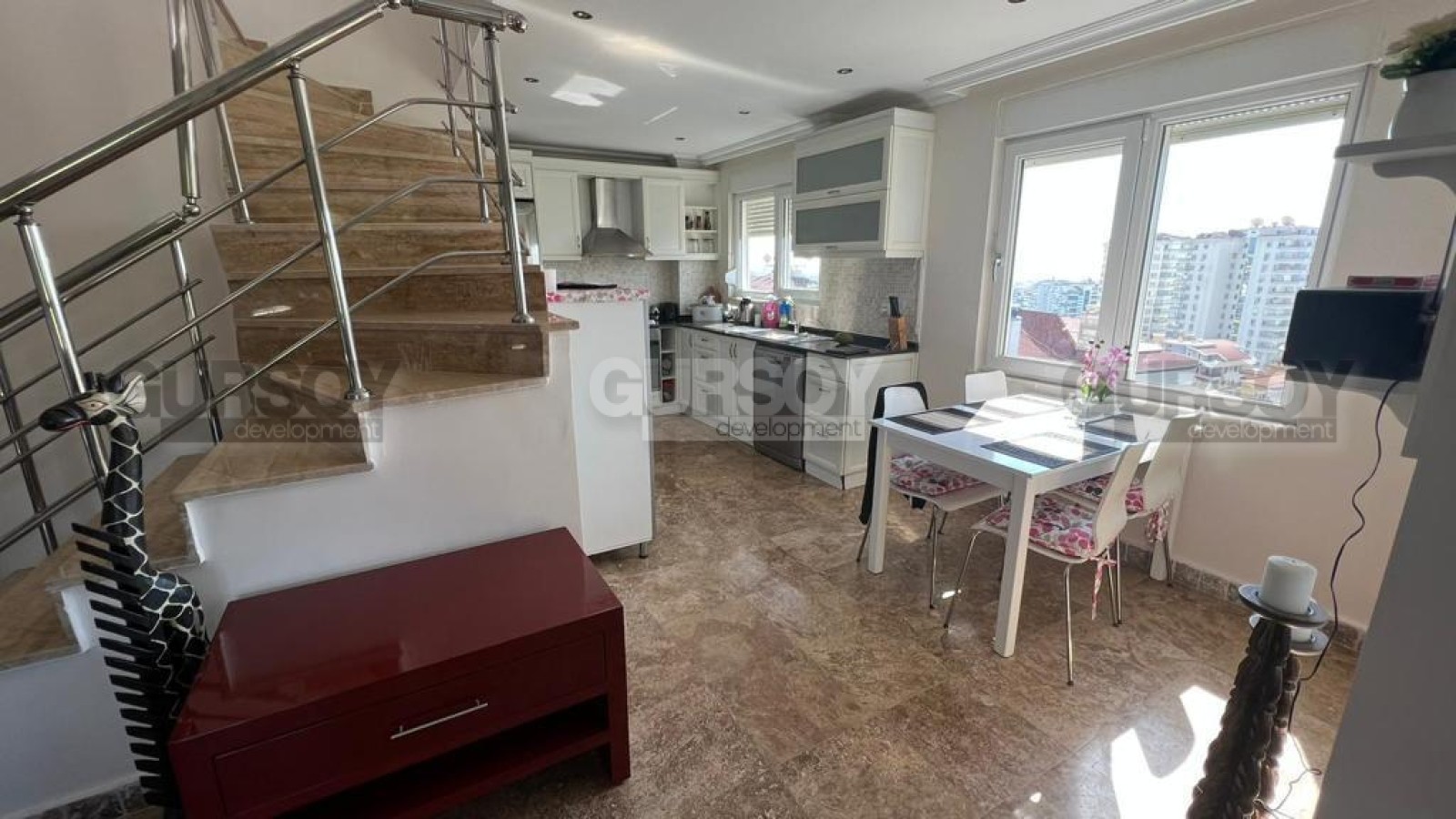 Компания Gürsoy Development представляет вашему вниманию просторный, полностью меблированный дуплекс планировкой 3+1 площадью 180 м² в районе Джикджилли. Уютный жилой комплекс в Джикджилли был построен в 2008 году. Двухуровневая квартира расположена на 4-м и 5-м этажах 5-этажного комплекса. Планировка квартиры подразумевает гостиную, совмещённую с кухней, 3 спальни, 2 ванные комнаты, большой застеклённый балкон и террасу. Квартира продаётся с полным комплектом мебели, бытовой техникой и кондиционерами. Ванные комнаты оборудованы сантехникой, есть душевая кабина и джакузи. Квартира полностью готова к заселению. С балкона и террасы открывается великолепный вид на Средиземное море, Крепость и Таврские горы. Дуплекс выходит юго-западную сторону.