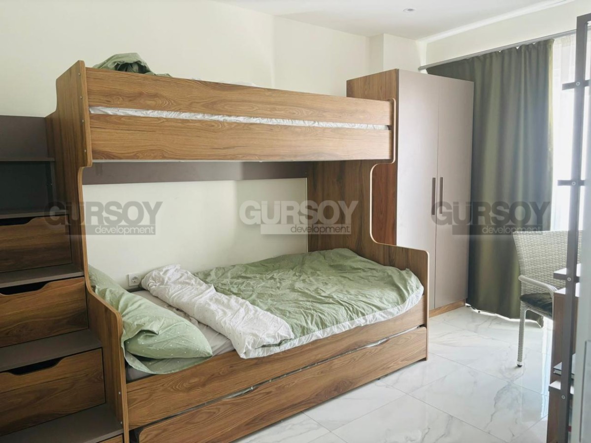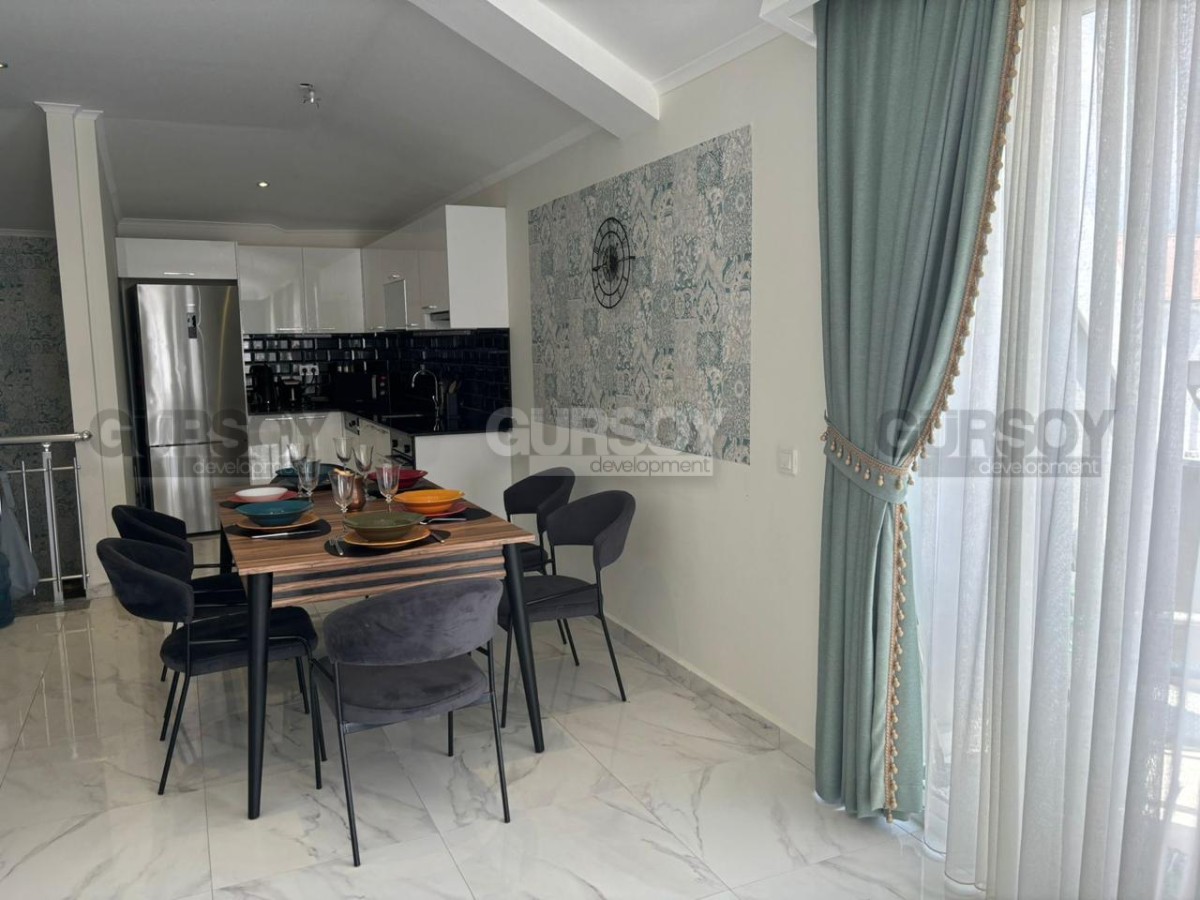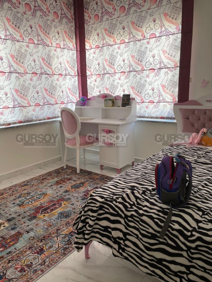 Предлагается квартира планировки дуплекс 4+1 площадью 178 м², полностью меблированная и укомплектованная бытовой техникой. В квартире три санузла и три просторных балкона, с которых открывается красивый вид на море.