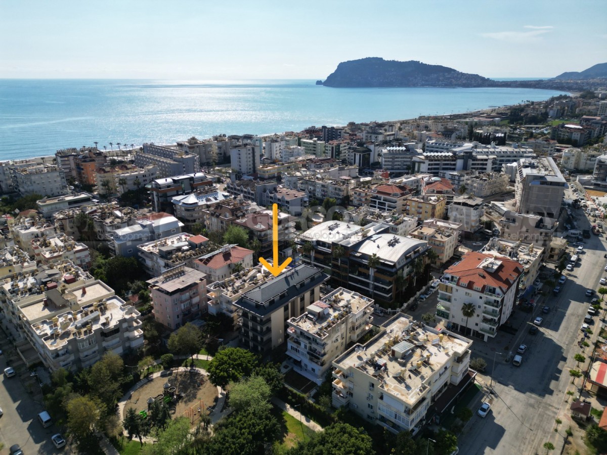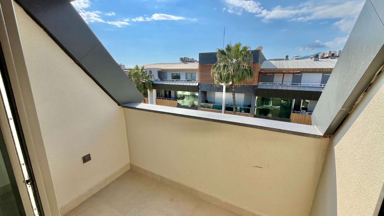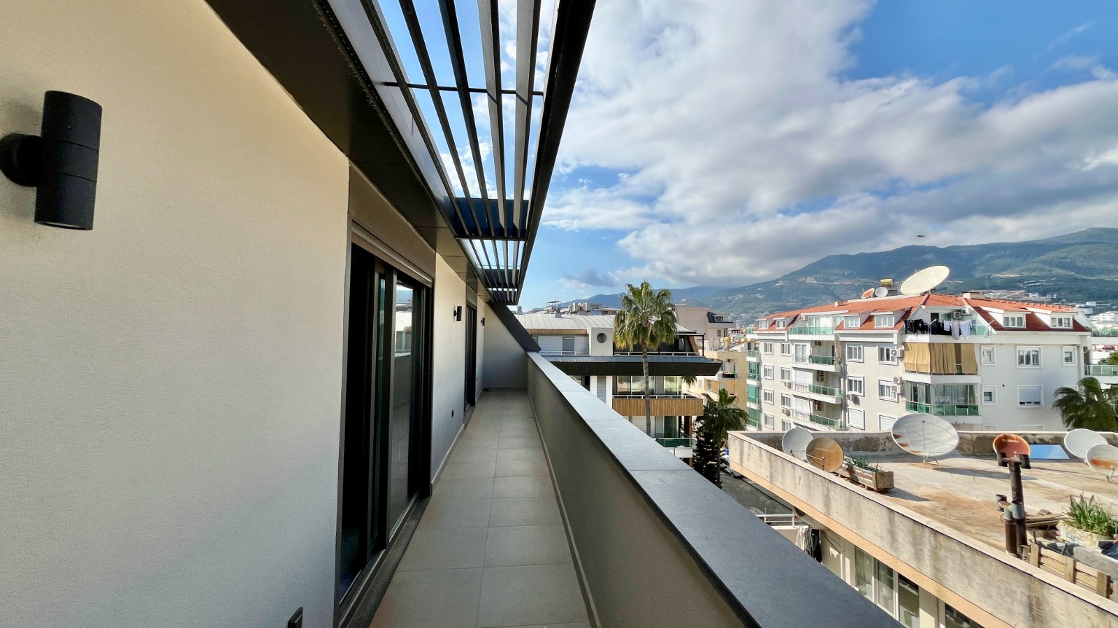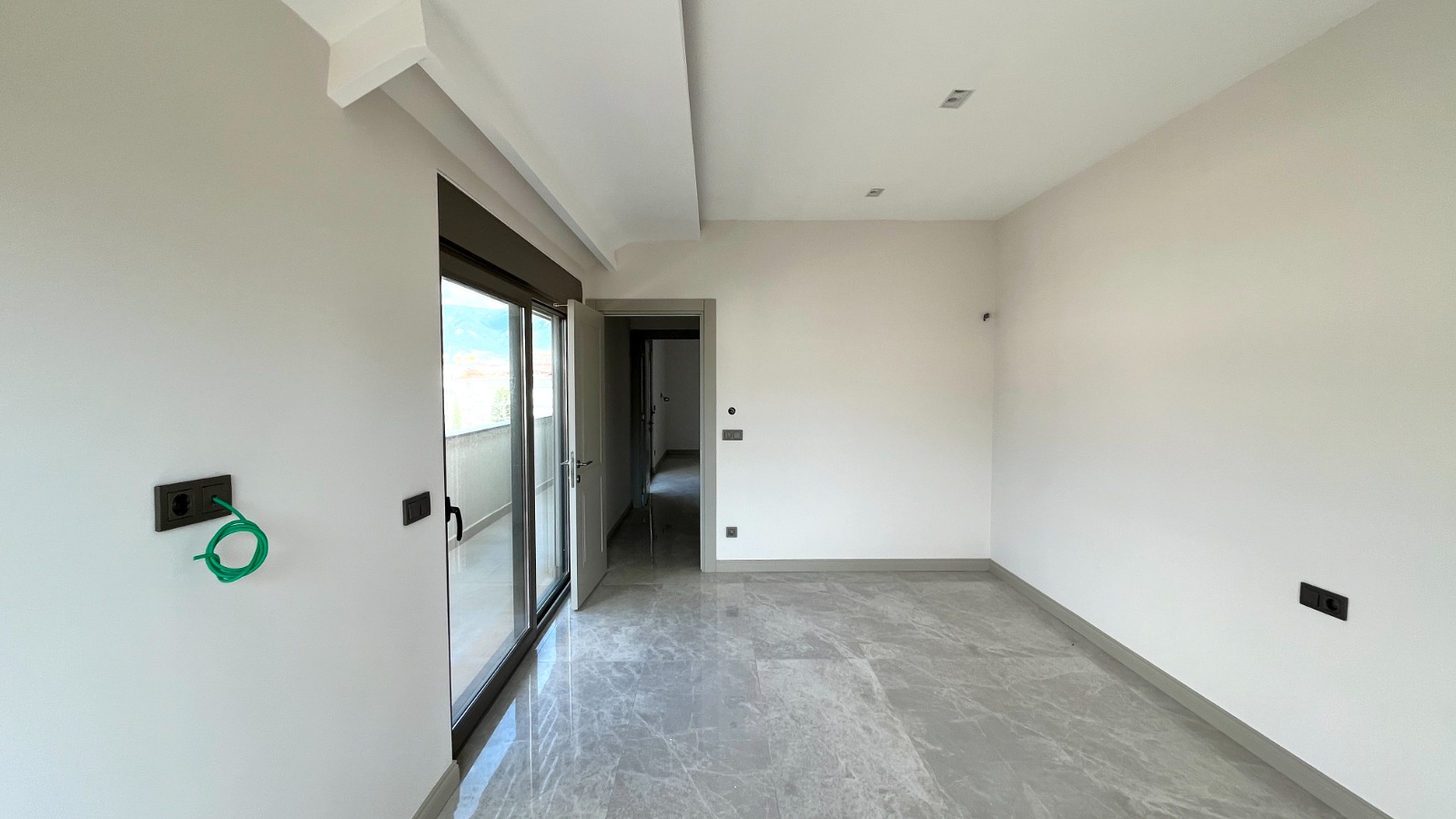 Предлагается к продаже двухуровневая квартира 3+1 общей площадью 135 м², расположенная на 4–5 этажах в районе Обагёль. Дом 2025 года постройки, современный пятиэтажный жилой комплекс. Квартира без мебели, имеет два балкона, планировка включает гостиную с кухней, отдельные спальни и два санузла.