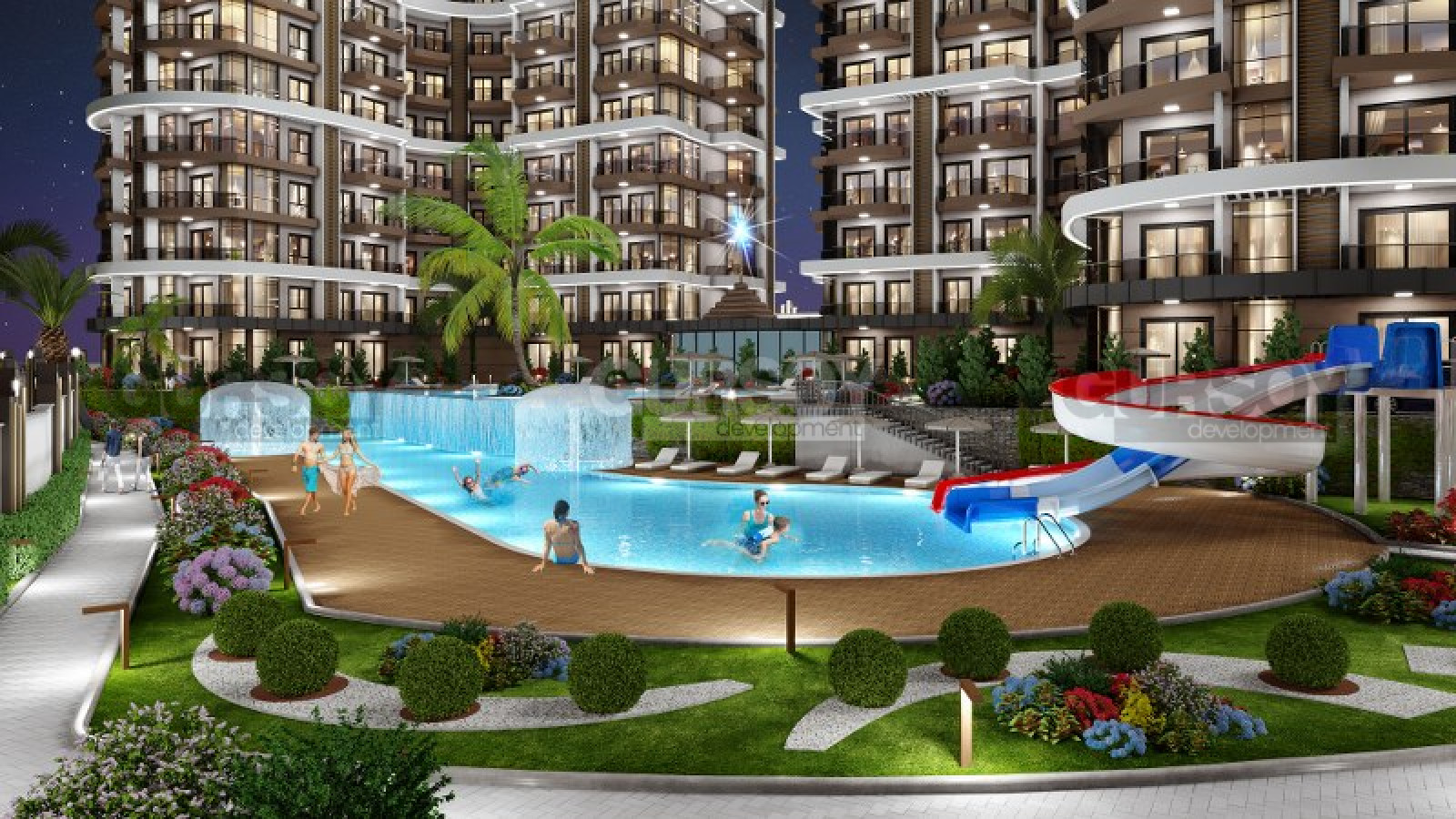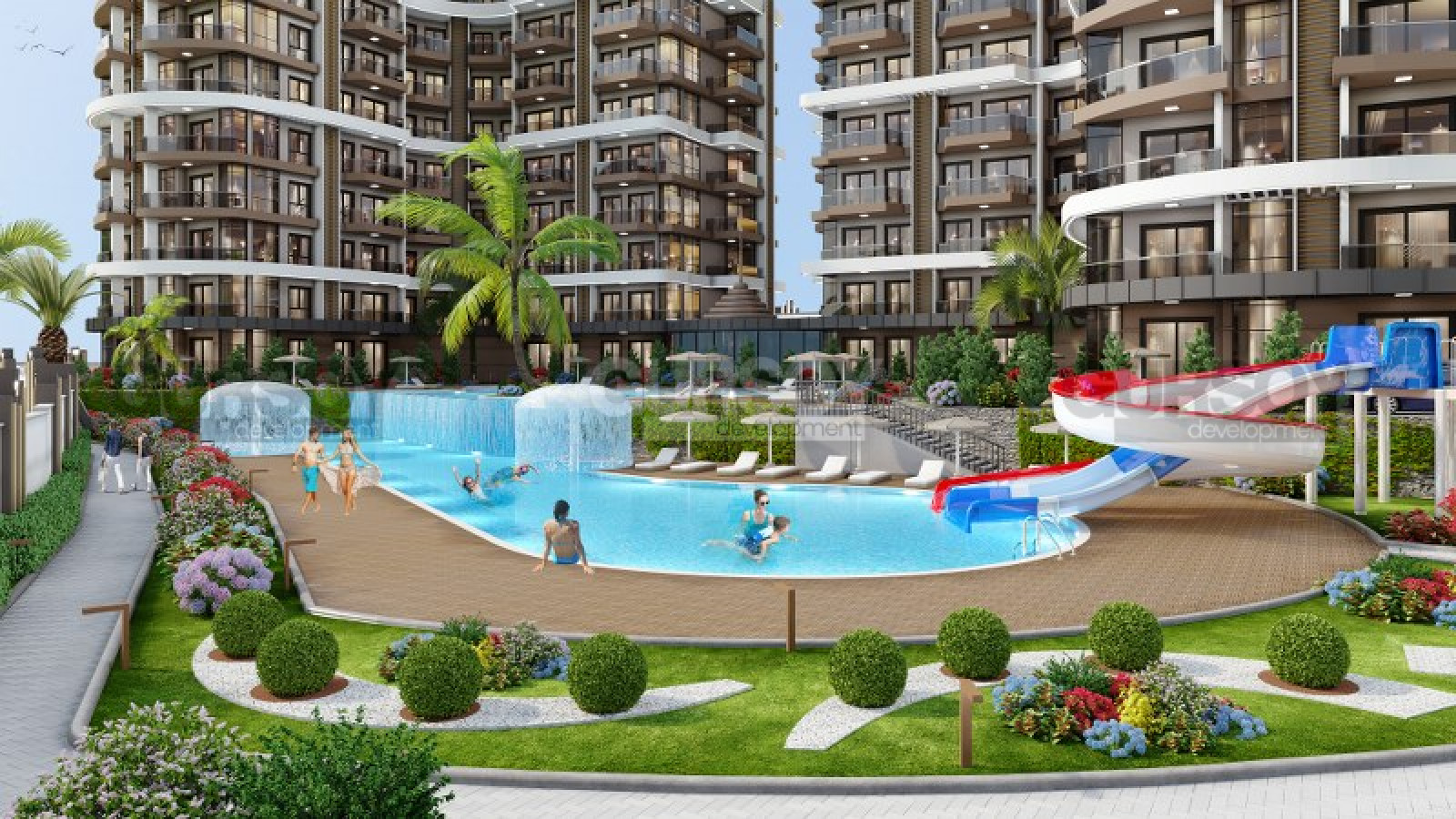В этом проекте объединена богатая инфраструктура с космополитичной атмосферой, чтобы создать место, где каждый день становится отпуском. С огромным бассейном инфинити, водопадами и прекрасным ландшафтом, вы сможете наслаждаться солнечными днями, не выходя из дома. Также, предоставлен пляжный сервис для жителей резиденции.