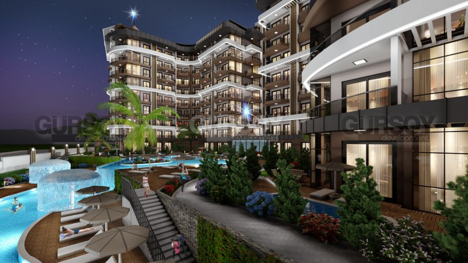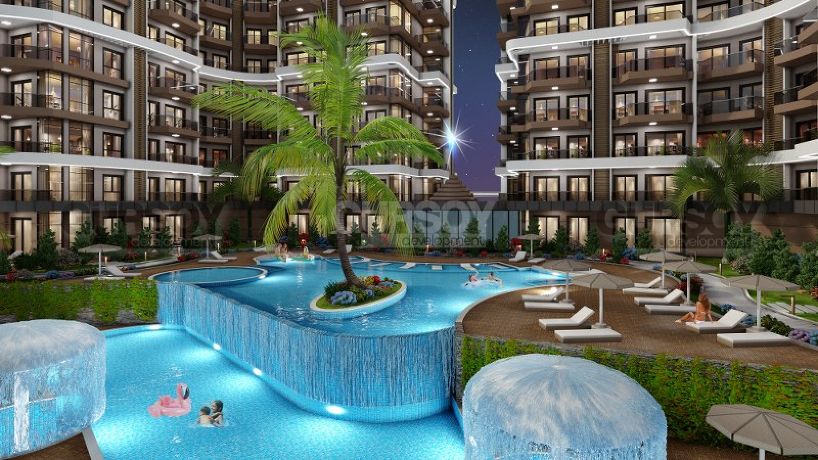 Агентство недвижимости Gürsoy Development представляет проект, расположенный в районе Паяллар. Жилая резиденция из 94 элегантных апартаментов 1+1, 14 просторных апартаментов 2+1, 2 двухуровневых дуплекса 3+1, 14 двухуровневых дуплексов 2+1 и 4 двухуровневых дуплекса 2+1 с садами и частными бассейнами, данный проект предлагает непревзойденный уровень жизни собственникам квартир.