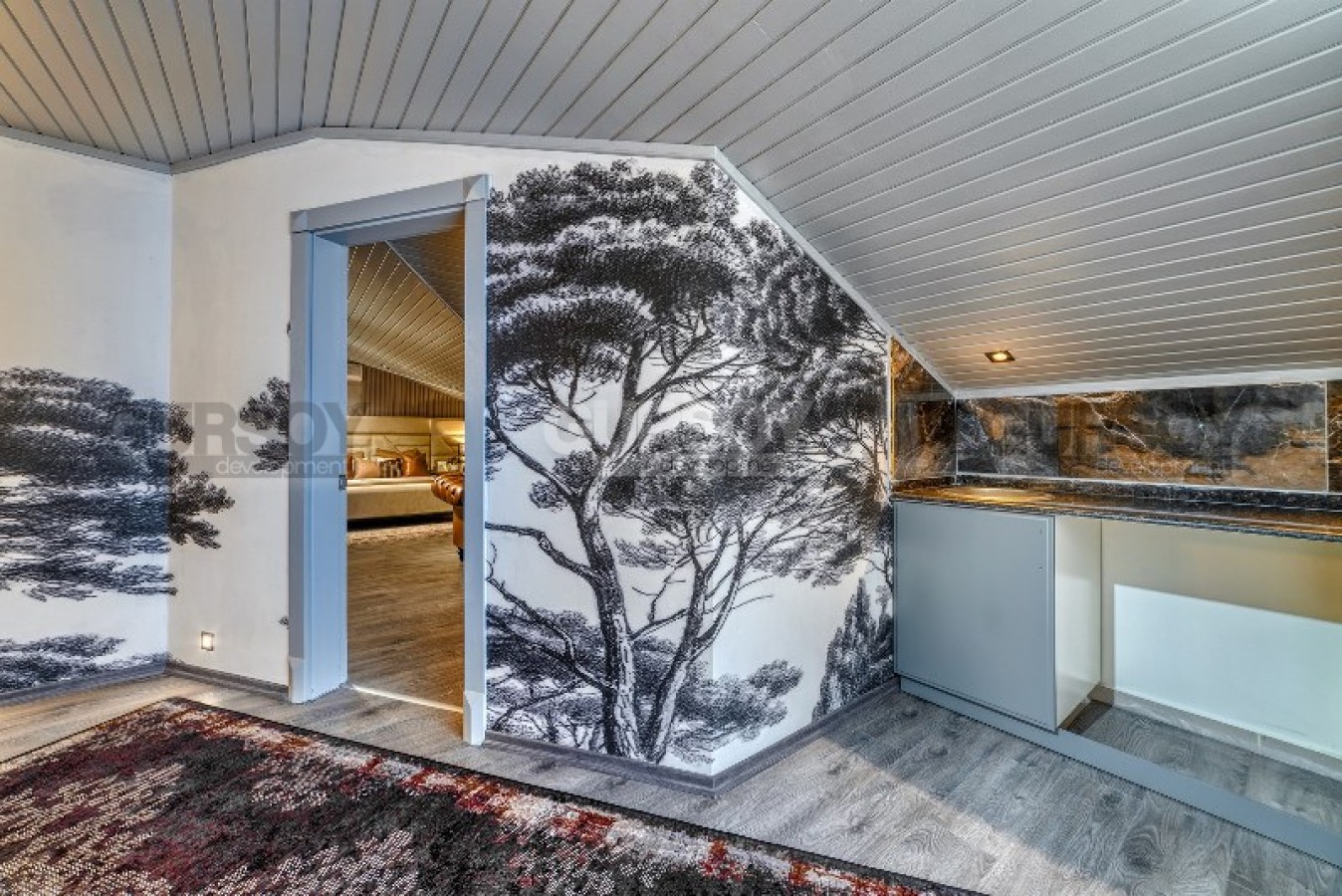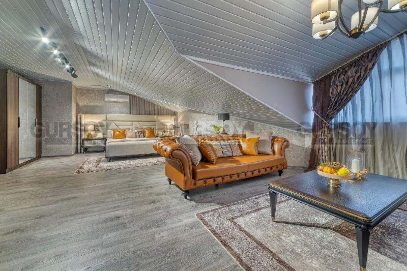 В данном разделе вашему вниманию представлена большая двухуровневая квартира, общей площадью 225 м2, расположенная на 4-м этаже с мансардой, в комфортабельном жилом комплексе, с ухоженной зеленой территорией и ландшафтным садом. В планировке дуплекса - совмещенная с кухней гостиная, удачно разделенная на обеденную зону и салон, 3 просторные спальни, 3 оснащенных душевыми кабинами санузла, сауна, открытый балкон и панорамная терраса, с видом на город и горные вершины. Дизайн квартиры выполнен по индивидуальному проекту, и поражает своим величием и роскошью. В нем гармонично сочетаются спокойные монохромные оттенки с яркими акцентами, бархатные, атласные и кожаные текстуры, изящная лепнина, оригинальные принты на стенах, стильные люстры и авторские предметы декора. Каждая деталь интерьера продумана до мелочей и несет максимальную функциональную и эстетическую нагрузку. Квартира полностью укомплектована эксклюзивной высококлассной мебелью и новейшей бытовой техникой, так что новым владельцам остается лишь оформить сделку, и наслаждаться комфортной атмосферой.