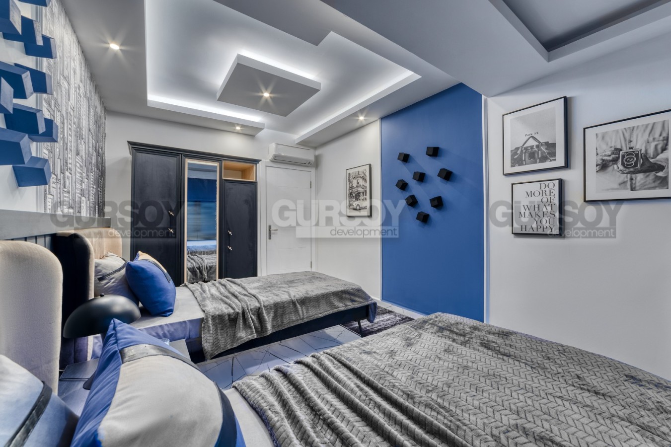 Компания Gürsoy Development представляет вашему вниманию роскошную квартиру 2+1 в самом сердце Алании, всего в 100 метрах от пляжа. Планировка квартиры 2+1, площадь - 100 м2. Квартира расположена на 2-м этаже 5-этажного жилого комплекса городского типа 2020 года постройки. Планировка квартиры подразумевает гостиную, совмещённую с кухней, 2 спальни, 2 ванные комнаты и балкон. Ванные комнаты оборудованы сантехникой и душевыми кабинами, есть стиральная машина и водонагреватель. Квартира предлагается к продаже в полной меблировке, с установленной бытовой техникой, стильным дизайном, точечным освещением и LED-подсветкой. Квартира выходит на западную сторону. С балкона открывается вид на улицу, поэтому вы сможете наслаждаться неспешным ритмом турецкой жизни даже не выходя из своей квартиры.