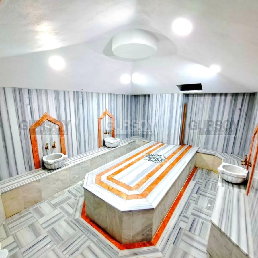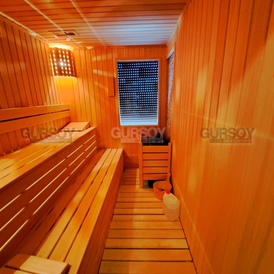 Вилла имеет собственную инфраструктуру. Здесь есть открытый и крытый бассейны, сауна и хамам. Благодаря этому Вы сможете прекрасно и с удовольствием проводить время в своём доме у моря. Также вилла имеет открытую парковку и ухоженную зелёную территорию. Сад отлично подойдёт для барбекю и вечеров за душевными разговорами.