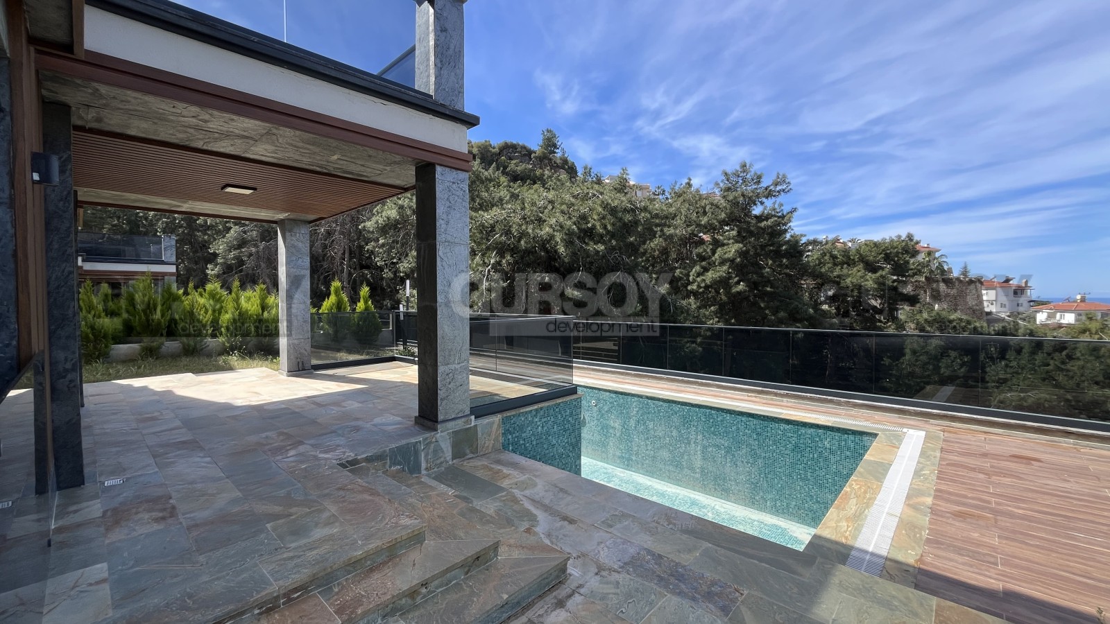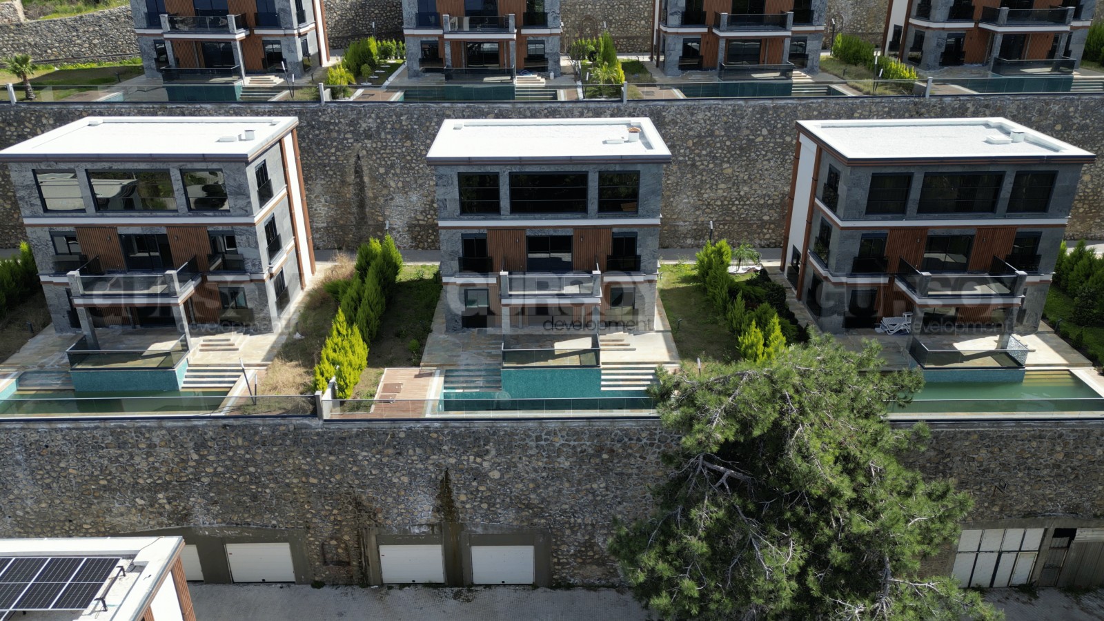 Комплекс, в который входит вилла, включает в себя 40 вилл, а также 7 блоков с многофункциональными помещениями. Для вашего удобства на территории комплекса есть все необходимое: бассейн с панорамным видом на море, гаражи, охраняемая территория, а также удобные зоны отдыха и спортивные объекты. В комплексе предусмотрены зеленые зоны для прогулок и активного отдыха, что позволяет наслаждаться природой в любое время.