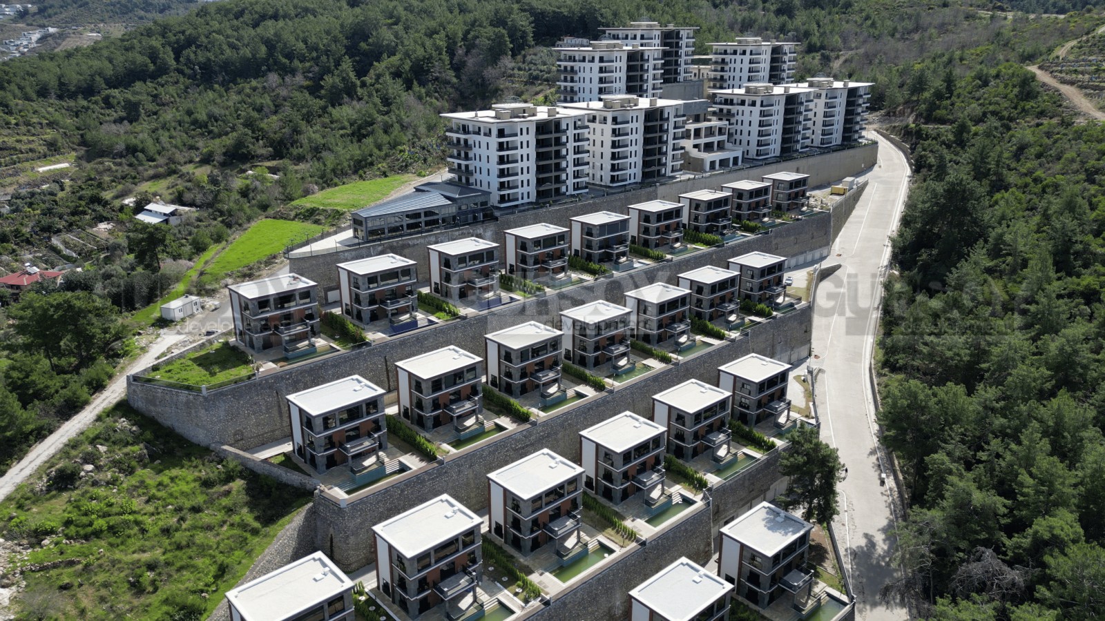 Комплекс расположен в одном из самых престижных и экологически чистых районов Алании — Каргыджак. Этот район известен своими потрясающими видами на море и горы, а также тишиной и спокойствием. Расположение комплекса среди природы, в окружении леса, идеально подходит для тех, кто хочет наслаждаться уединением и комфортом, но в то же время быть в непосредственной близости от инфраструктуры города. Карджыджак расположен всего в нескольких минутах от пляжей и популярных туристических мест.