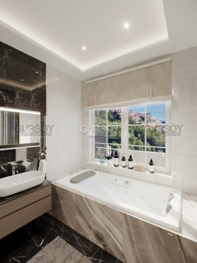 Предлагаем Вашему вниманию роскошную виллу на этапе строительства, которая может стать вашей, если вы цените приватность, эксклюзивность и комфорт. Вилла расположена в районе Тепе – центральная часть Алании. Благодаря тому, что вилла расположена на холмах, практически из каждого уголка открывается потрясающий вид на горы, море и просто красивый город, особенно это ощущается ночью, когда миллионы огней зажигаются и город превращается в волшебное место. Воздух здесь пропитан ароматами сосен и цветов, а ночное небо украшено яркими звездами, создавая неповторимую атмосферу романтики и величия природы.
