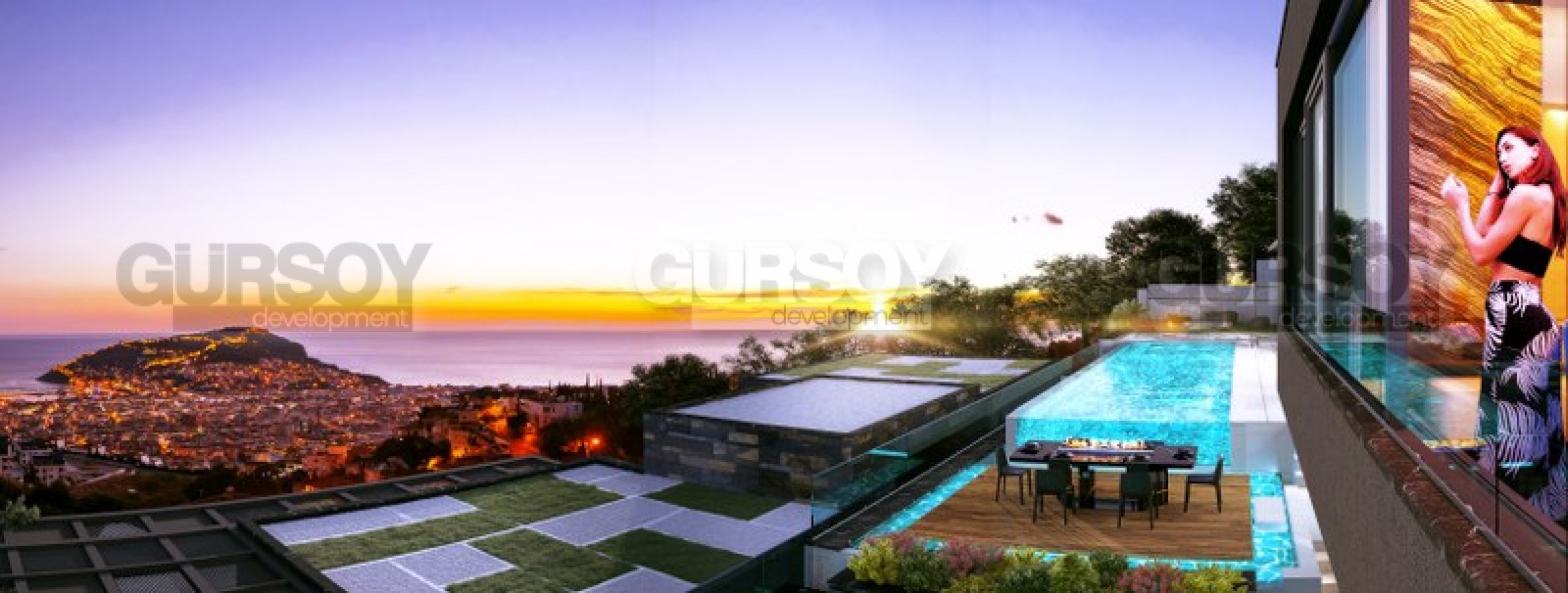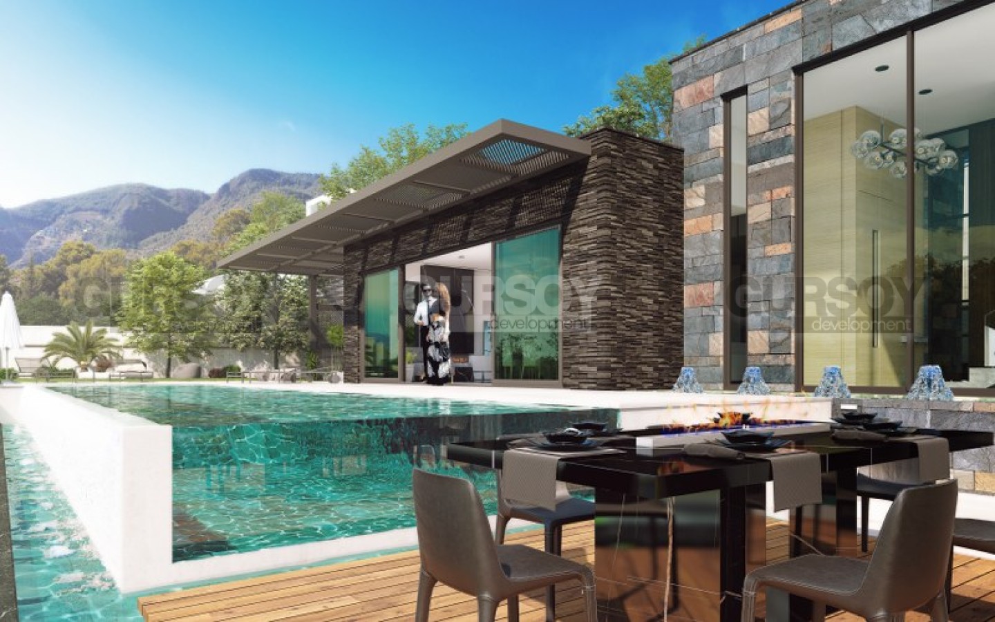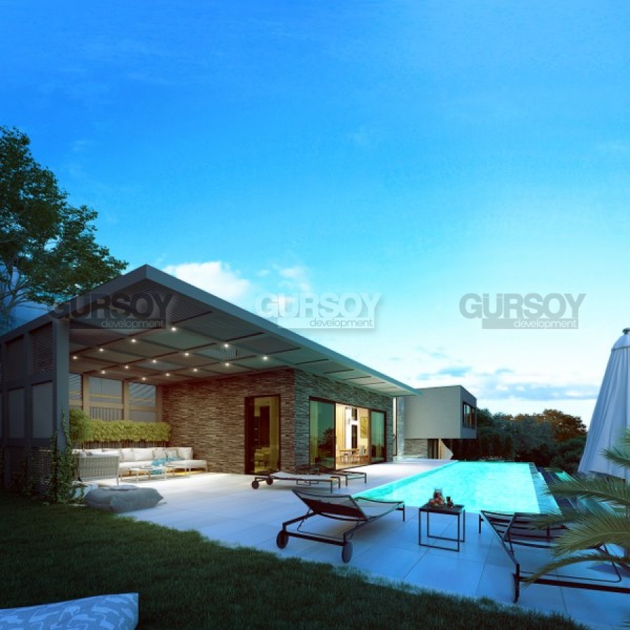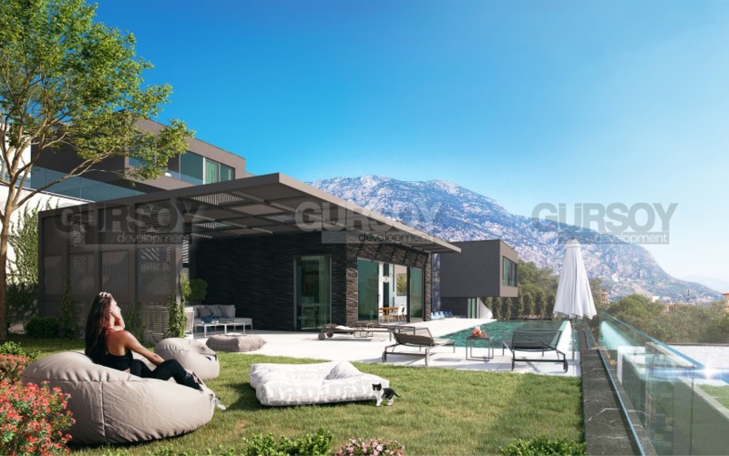 Компания Gürsoy Development предлагает Вашему вниманию новую виллу премиум класса планировкой 4+1. Общая площадь объекта недвижимости - 761 м2. Закрытая площадь - 659 м2. Крытая парковка - 100 м2. Открытая площадь - 598 м2. Садовая терраса - 268 м2. Декоративный бассейн - 45.7 м2, плавательный бассейн - 54 м2, длина бассейна - 15*4 м, зелёная зона - 231 м2. Вилла находится на территории комплекса, который состоит из 5 элитных вилл, расположенных каскадом.