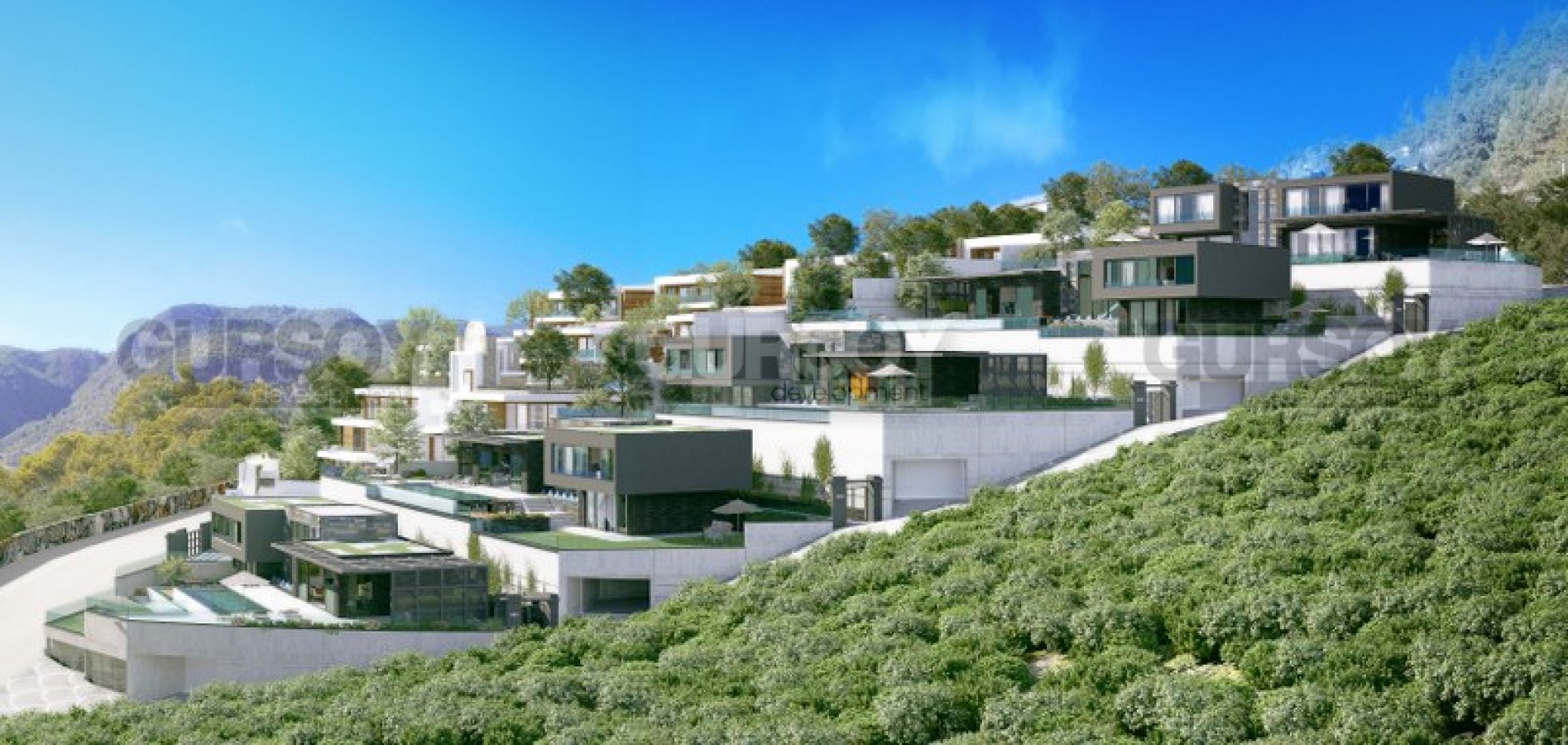 Марка бетона: С30. Изоляция: добавка в бетон для фундамента, стены жёсткости, вся скользящая изоляция, террасы, теплоизоляция на внутренней поверхности, полиуретан на внешней поверхности, полноэластичная скользящая изоляция на основе полиуретана + цемента, ботаническая мембрана. Системы отопления и охлаждения: VRF Mitsubishi Heavy, канальная вентиляция, водяная система тёплого пола и тепловой насос. Дверные и оконные рамы: теплоизолированный алюминиевый профиль + закалённое комфортное стекло. Освещение и слаботочные системы: кабельная инфраструктура без галогенов, наружные камеры, видеонаблюдение, датчики движения, датчики тепла и дыма, инфраструктура автоматизации, беспроводное дистанционное управление в гостиной и родительских комнатах. Нет теплового насоса. Фасадные покрытия: колотый облицовочный камень или искусственный камень, тонкий камень или сланец, краска Jotun или аналог. Напольная плитка: мрамор — керамика. Облицовка бассейна: керамика. Влажные зоны: керамика Основные приборы: Siemens A++ или аналог (посудомоечная- стиральная-сушильная машина, холодильник, вытяжка, микроволновая печь, плита). Сантехника — смесители: Grohe, Duravit, Bocchi или аналог.