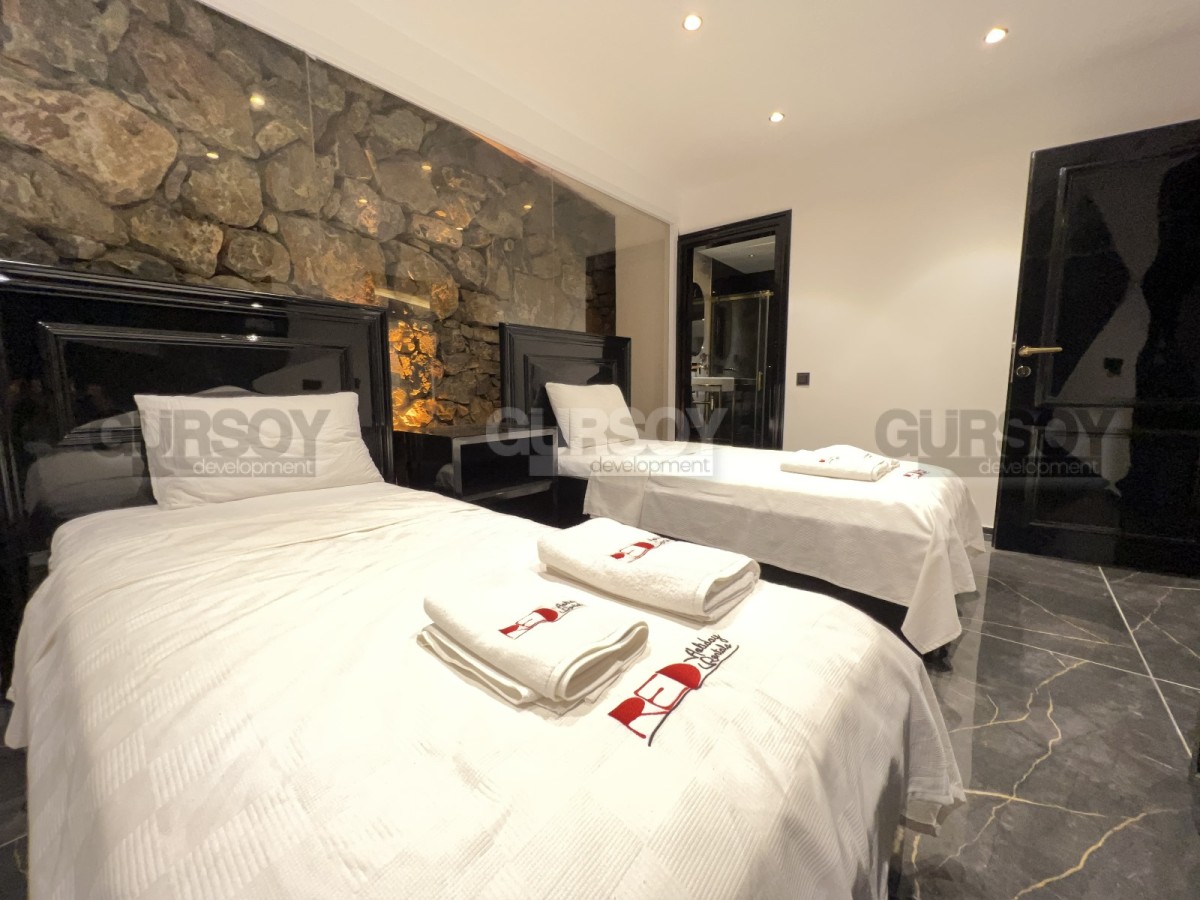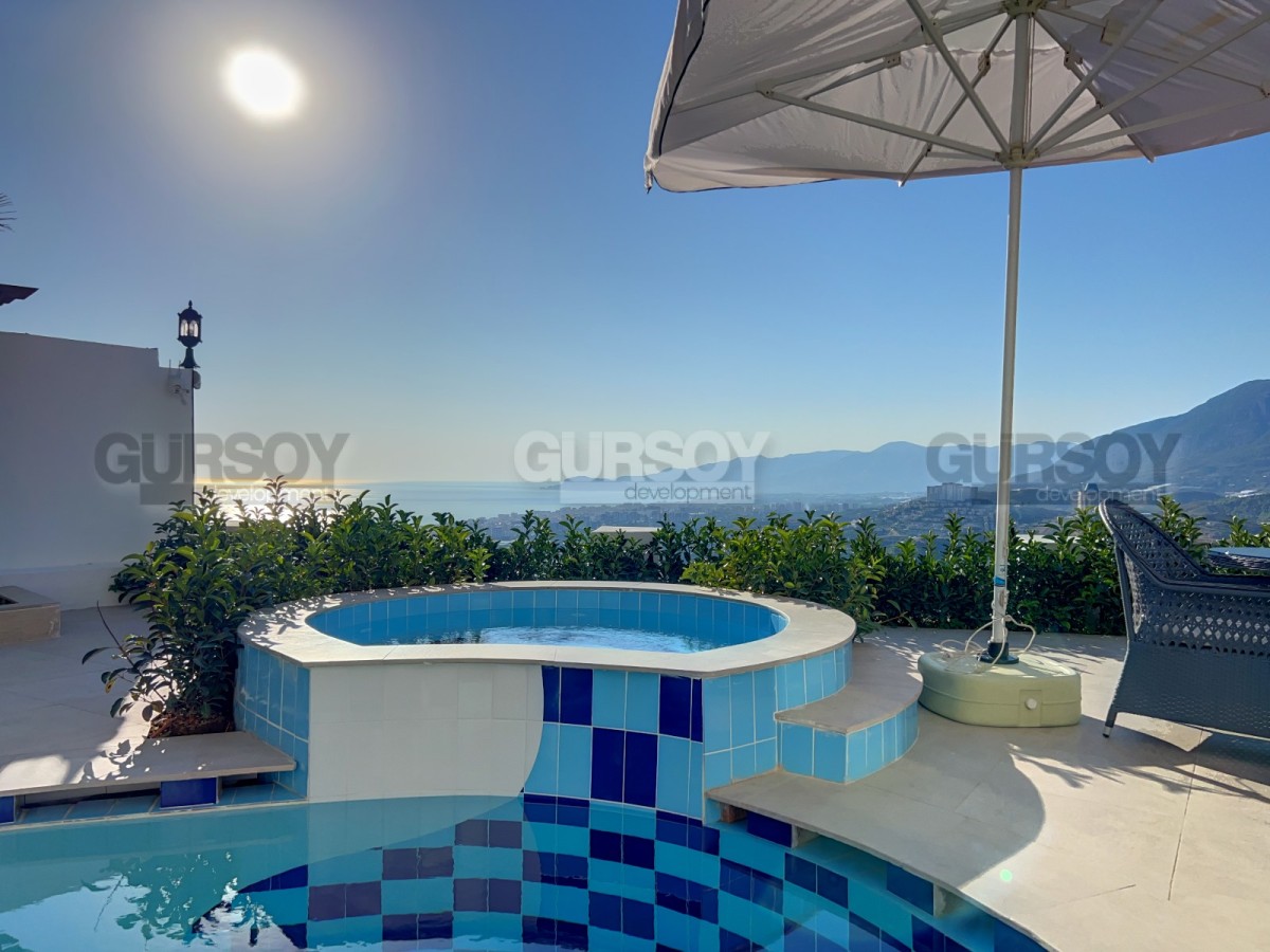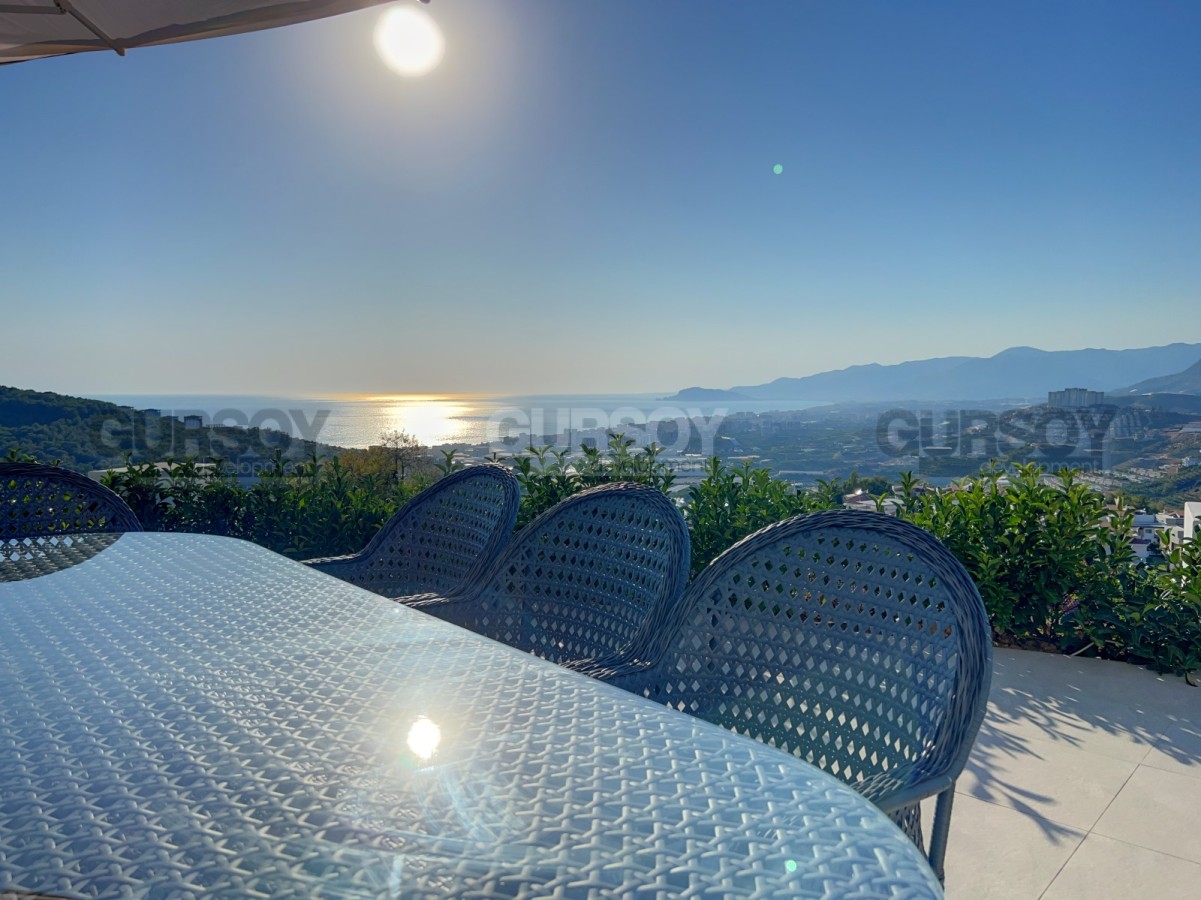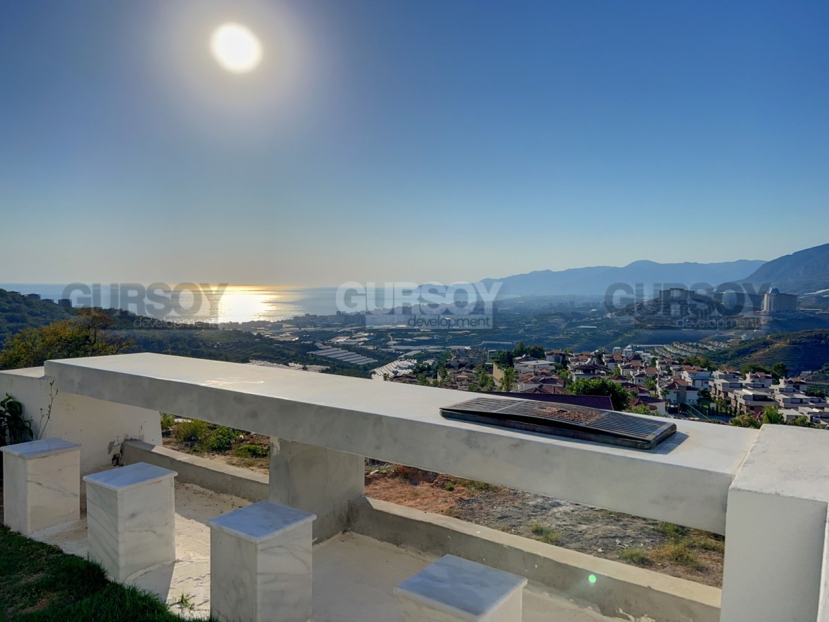 Из окон и с террас виллы открывается захватывающий вид на замок Аланьи, бескрайнее Средиземное море и величественные горы Тавр. Трехэтажная вилла полностью меблирована и готова к заселению.