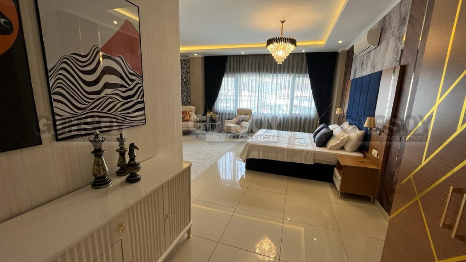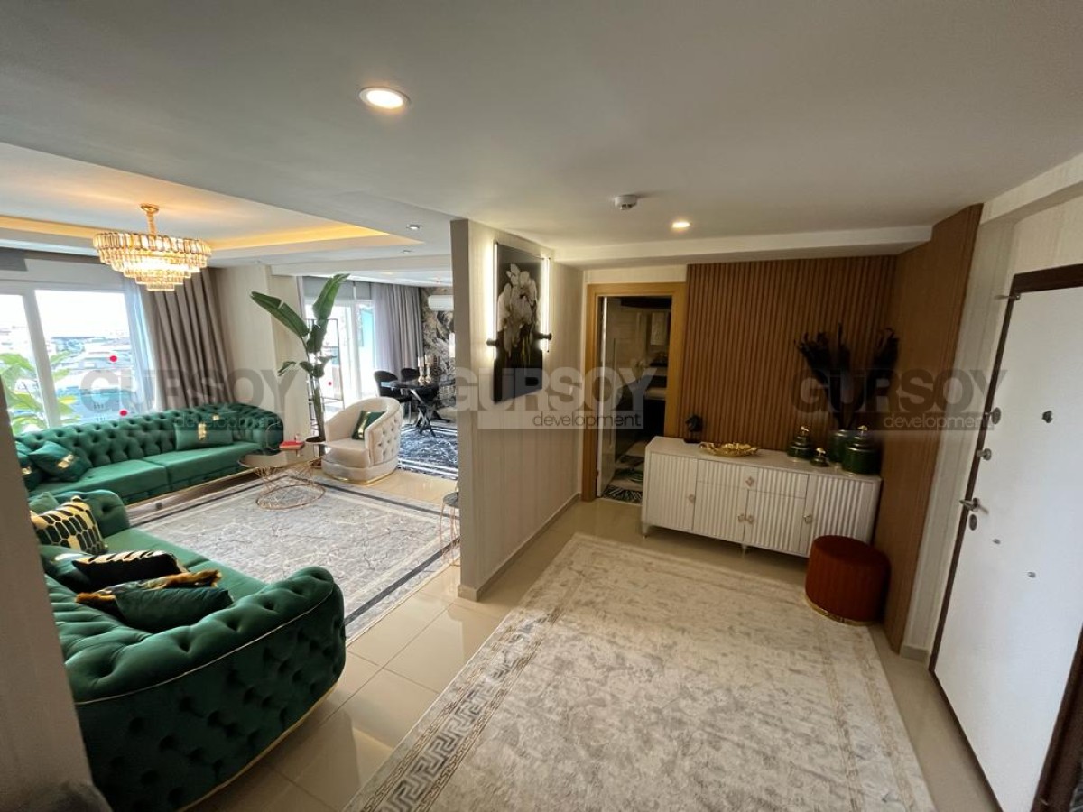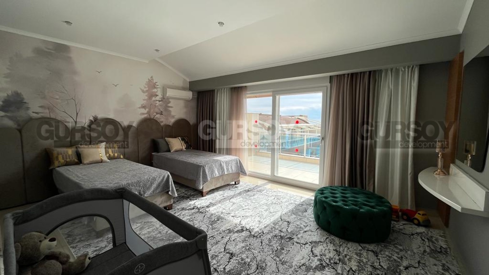 На продажу представлен просторный пентхаус с четырьмя спальнями и гостиной, общей площадью 220 квадратных метров. Этаж - девятый, что позволяет наслаждаться потрясающими видами на живописный пейзаж Алании и морские просторы.