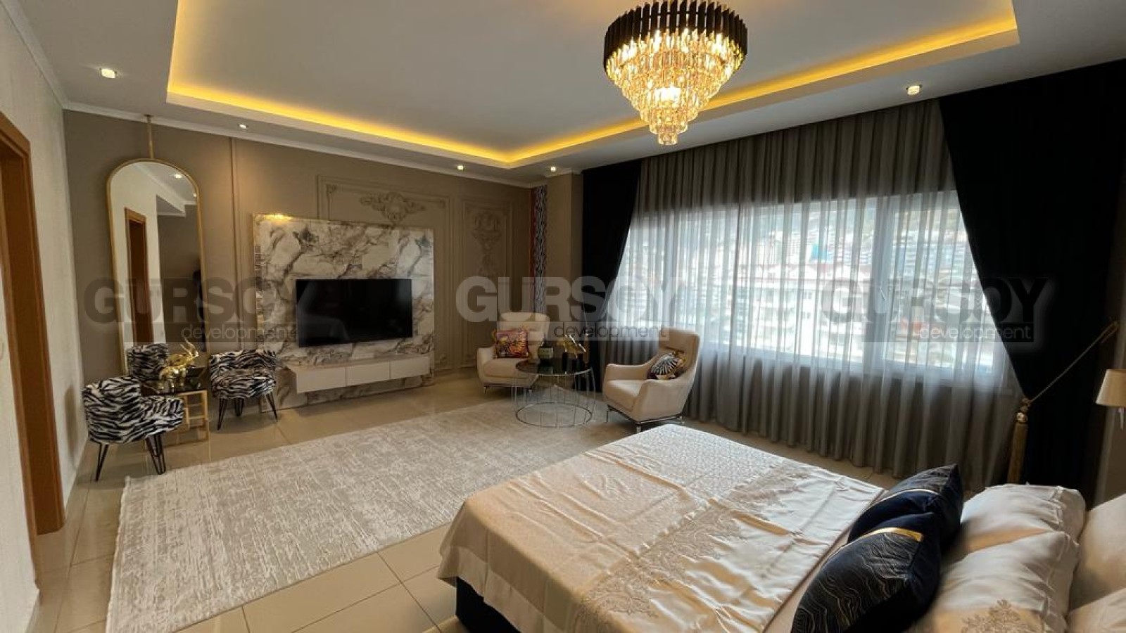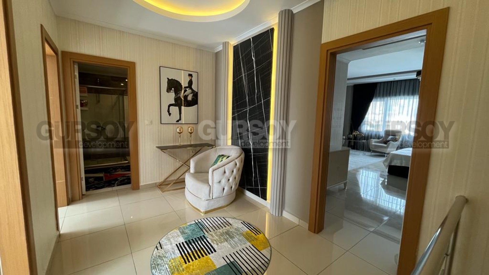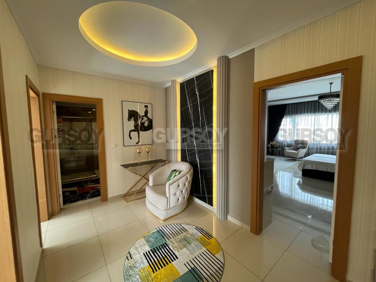 На продажу представлен просторный пентхаус с четырьмя спальнями и гостиной, общей площадью 220 квадратных метров. Этаж - девятый, что позволяет наслаждаться потрясающими видами на живописный пейзаж Алании и морские просторы.