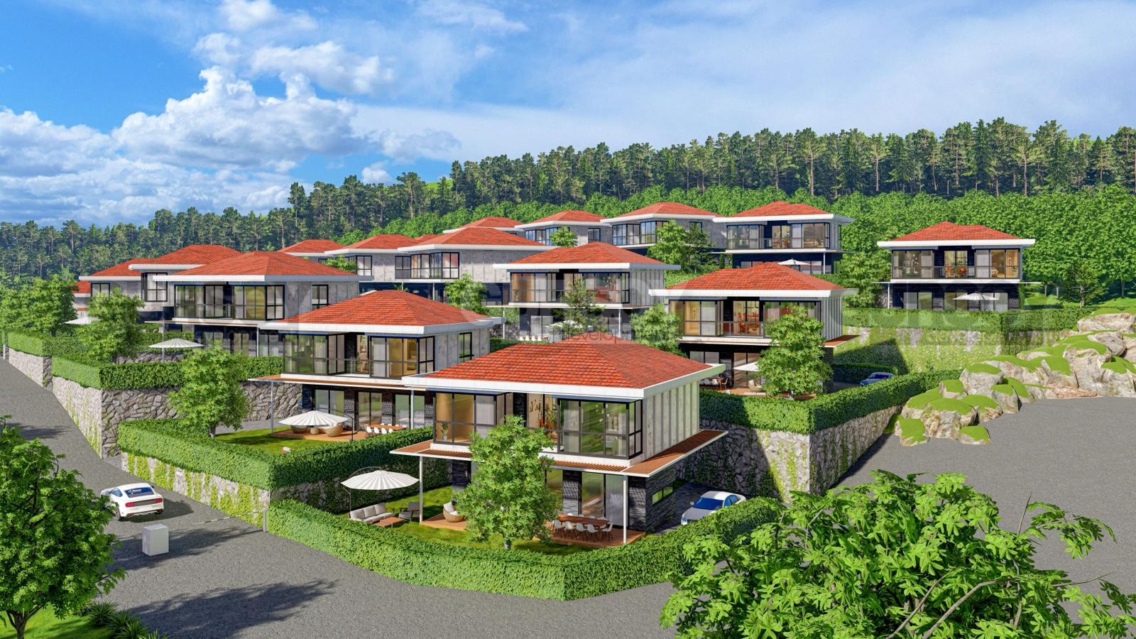Представляем вашему вниманию новый роскошный комплекс вилл в районе Бекташ, строительство которого будет завершено в декабре 2025 года. Комплекс состоит из вилл планировки 4+1, каждая из которых предлагает просторные американские кухни, четыре спальни, три ванные комнаты и балконы, а также собственные участки земли с великолепными садами.