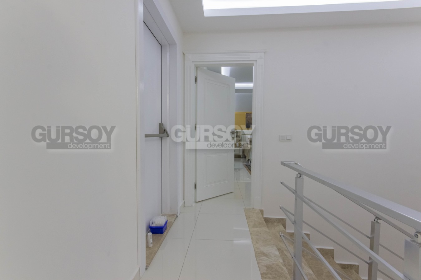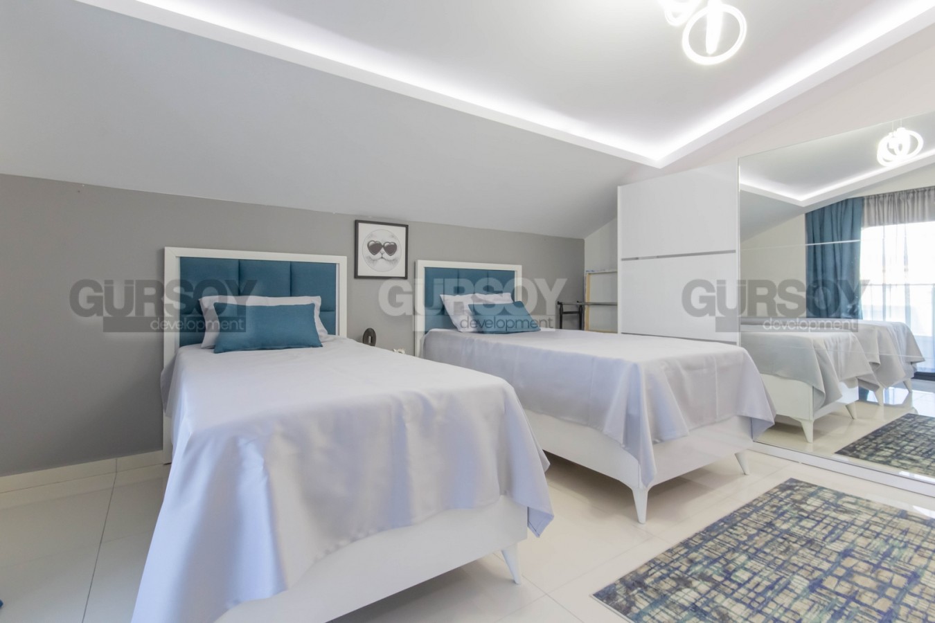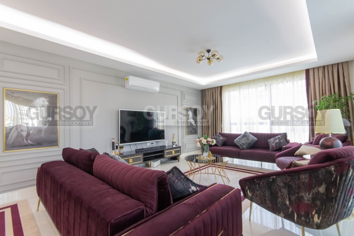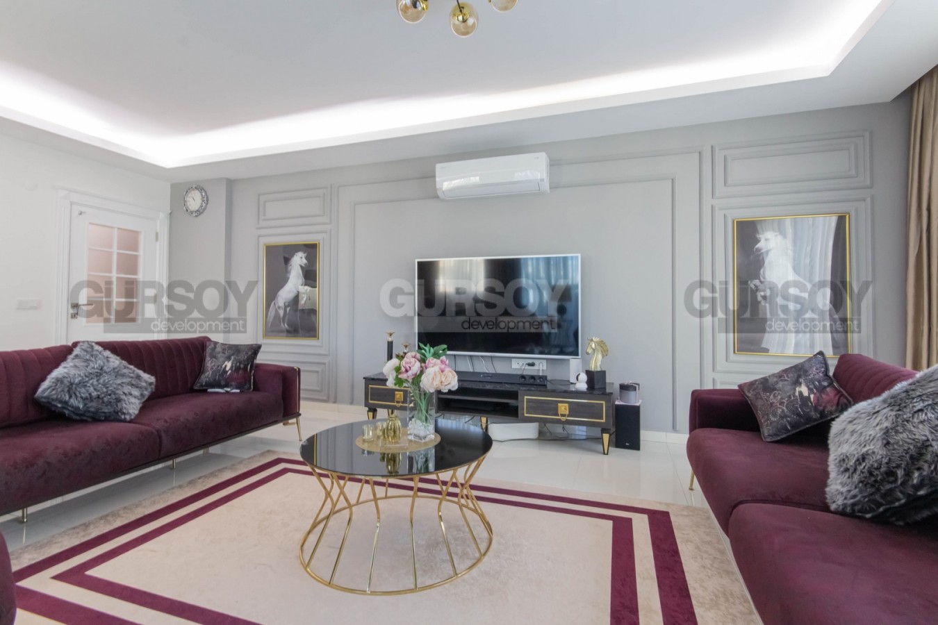 Площадь двухуровневой квартиры - 220 м2. Она расположена на 5-м и 6-м этажах 6-этажного жилого комплекса 2019 года постройки. Планировка 3+1 подразумевает наличие гостиной, совмещённой с кухней, 3 спален, 4 ванных комнат, 2 балконов и террасы. Квартира продаётся с полным комплектом стильной мебели, установленной бытовой техникой, кондиционерами и LED подсветкой. Ванные комнаты оборудованы сантехникой и душевыми кабинами.