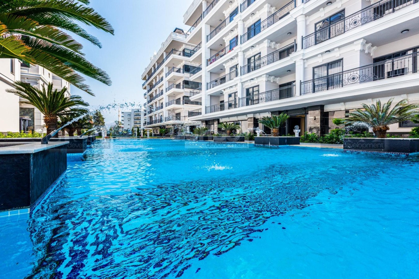 Инфраструктура комплекса: благоустроенная озеленённая территория, бассейн, зоны для загара и отдыха, закрытый «зимний» бассейн с подогревом, фитнес-центр, СПА-центр, сауна, хамам, массажные комнаты, кинотеатр, детский игровой клуб, бильярд, настольный теннис, детская игровая площадка, уборка/прачечная 24/7, трансфер до аэропорта, открытые парковки, Wi-Fi Internet, электрогенератор, резервуар с водой, служба экстренной помощи 24/7, услуги вызова такси, охрана комплекса 24/7, свой пляж.
