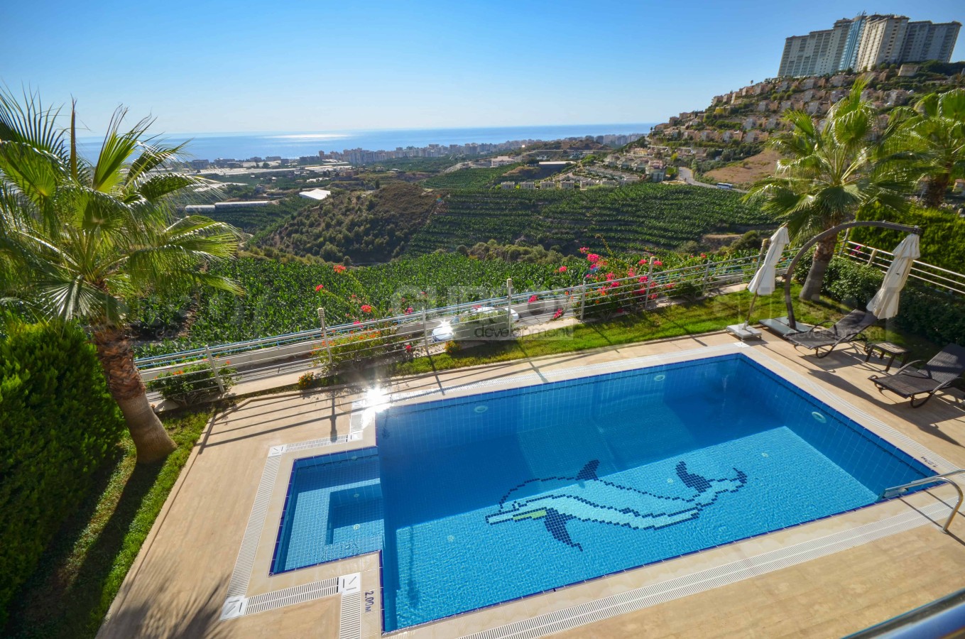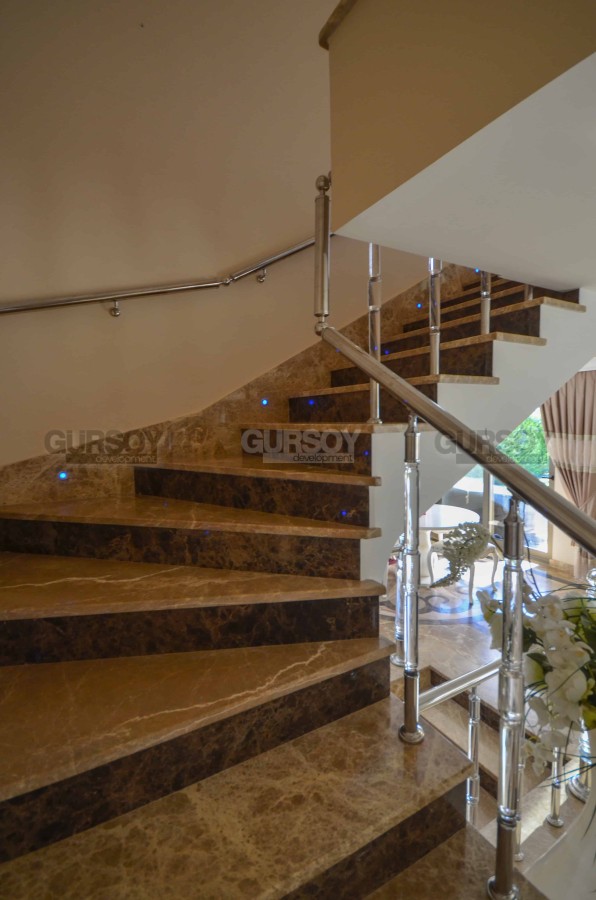 Вилла имеет личный бассейн, сауну, парную, хамам и фитнес зал. Расположена вилла на территории великолепного масштабного многофункционального комплекса, включающего апартаменты и виллы класса люкс, расположенного в живописной местности на холме у подножия величественных гор Таурус, откуда открываются изумительные панорамные виды на Аланийскую крепость, фруктовые плантации, горные массивы, живописное побережье, береговую линию и бесконечную синеву Средиземного моря. Все это создаёт атмосферу абсолютной свободы и полной безмятежности.