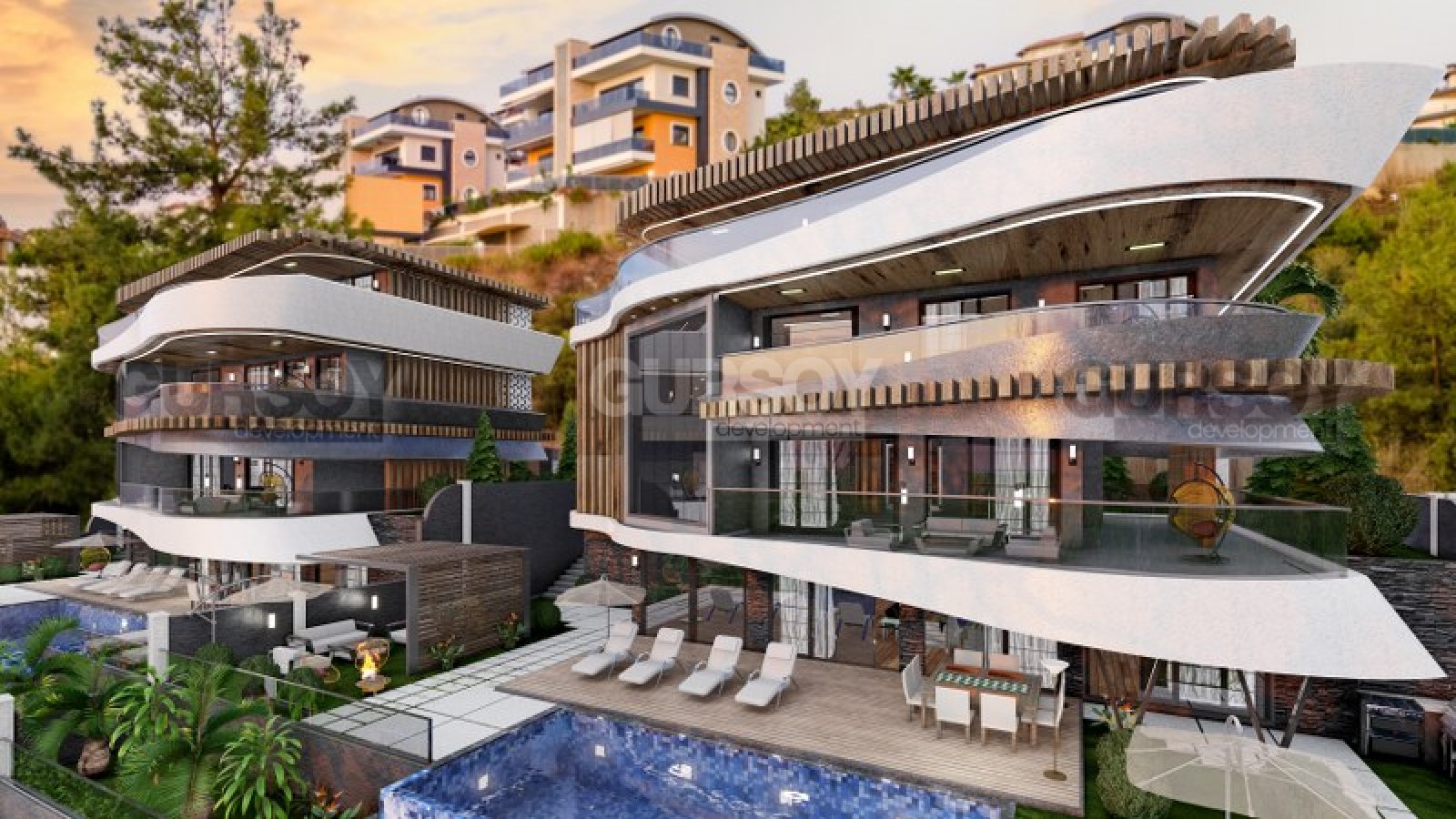 Агентство недвижимости Gursoy Development представляет две ультрасовременные виллы в районе Каргыджак, который находится в 14 км к востоку от центра курортного города. Район славится своими панорамными видами на море и город. здесь в основном ведется строительство объектов премиального сегмента.